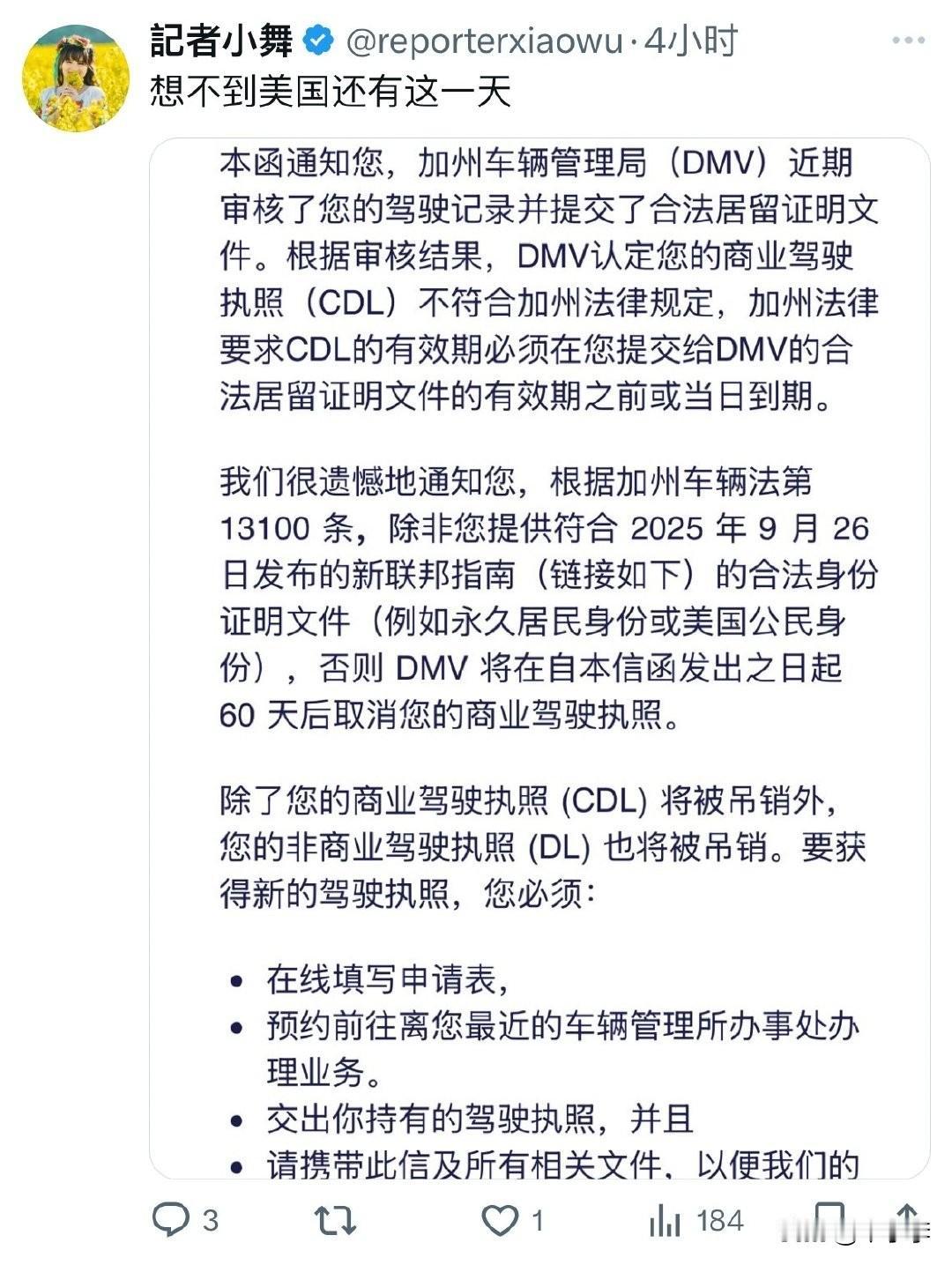放着体制內的工作不干卖了房子车子带着老婆孩子跑到美国和十几个大男人挤群租房风里雨里送外卖一天工作十几个小时经常送到凌晨两点也仅够糊口实在不知道怎么夸美国就指着狗尾巴草说比中国好看的“记者小舞”的驾照要被没收了,连外卖都送不了了,只能去餐馆里当刷碗机器人了。 [大笑][大笑][大笑]润人润事 润人傻事 美国打工人