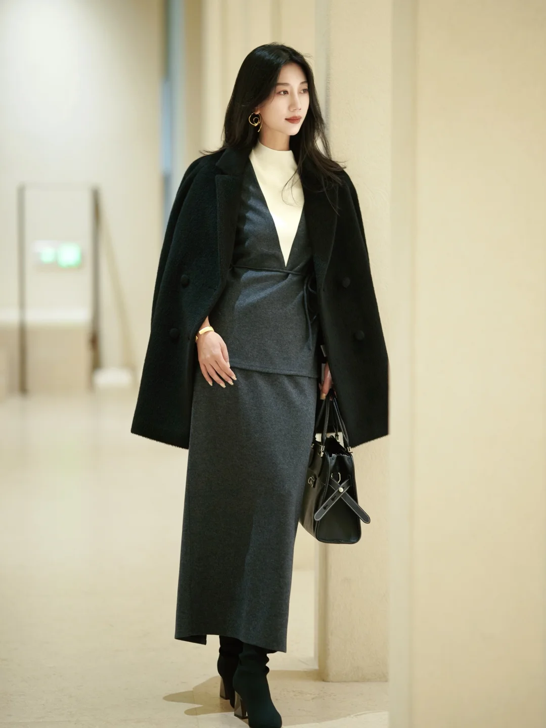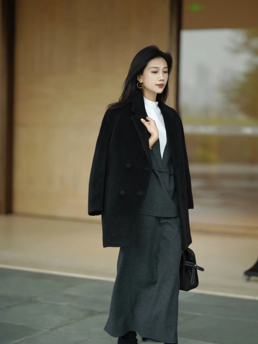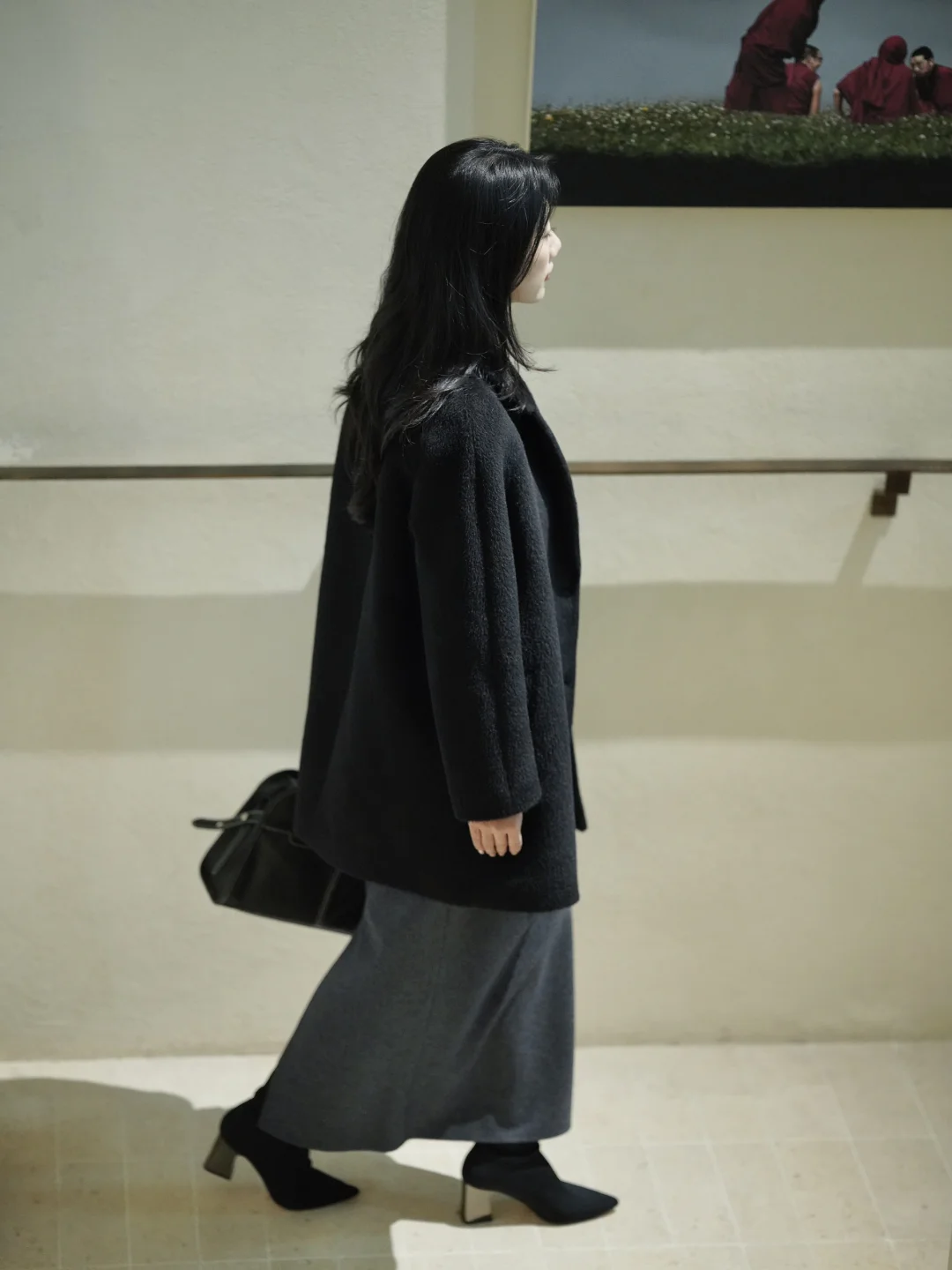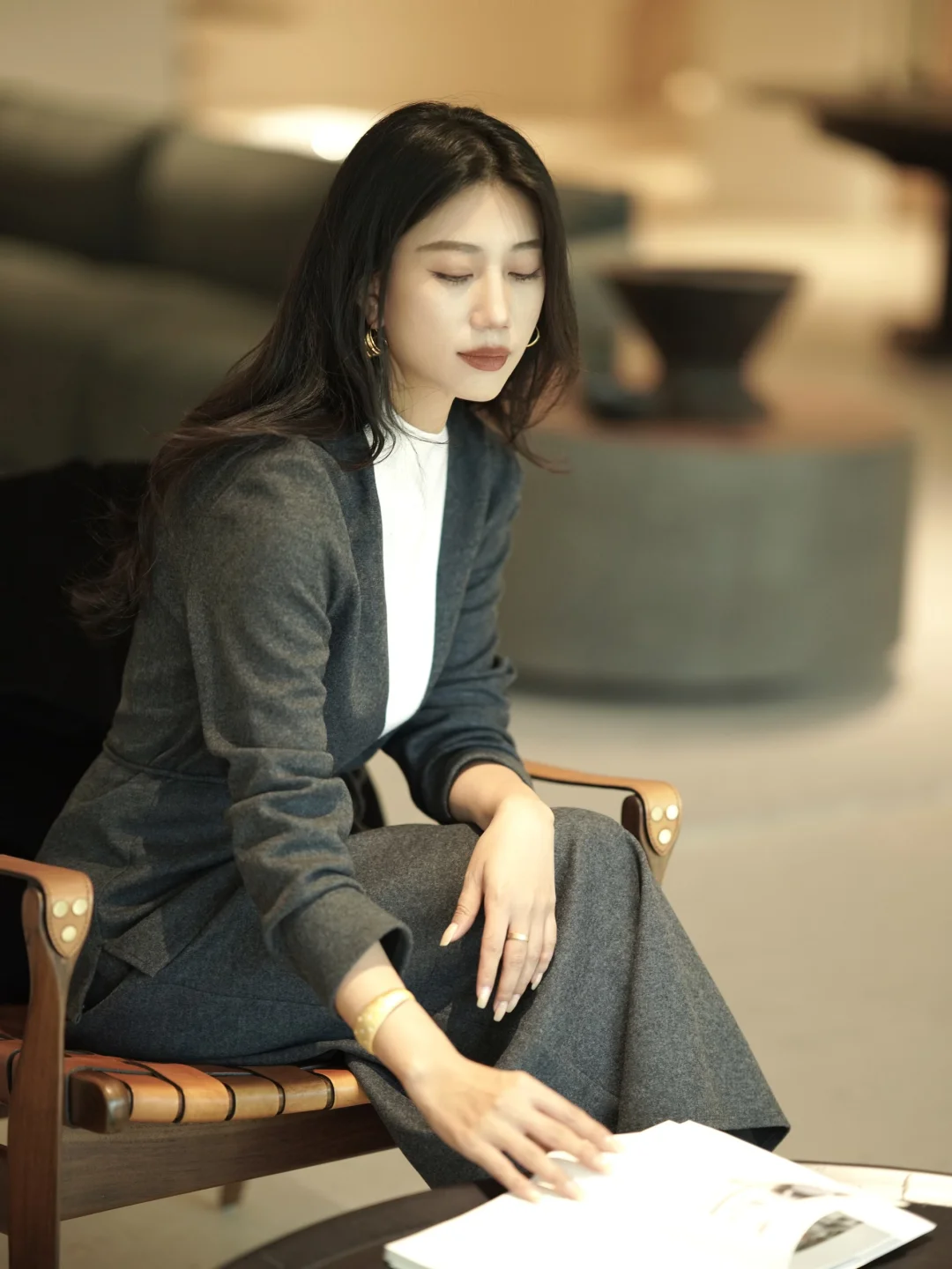 步入三十五岁,渐渐懂得衣装是内在心境的延伸。 秋凉时节,一件西装领双排扣羊驼毛大衣。便成了从容的伴侣。 柔润的温暖包裹肩颈,经典剪裁勾勒出利落轮廓——那不只是御寒,更是一份不疾不徐的底气。 内搭灰色羊毛套裙,细腻质地与大衣相融。漫步艺术空间,在画作与光影间流连,衣摆轻扬。此刻,穿搭与心境一同沉静下来;无需言语,身体感知的是面料承载的温柔,线条诉说的永恒。 好的衣物从不是束缚。它让你在展厅里专注品读美,步入会议室时沉稳自信,转换于不同场景却始终自洽。这个年纪,终于明白:真正的质感,是外衣的妥帖,更是内心的从容。
