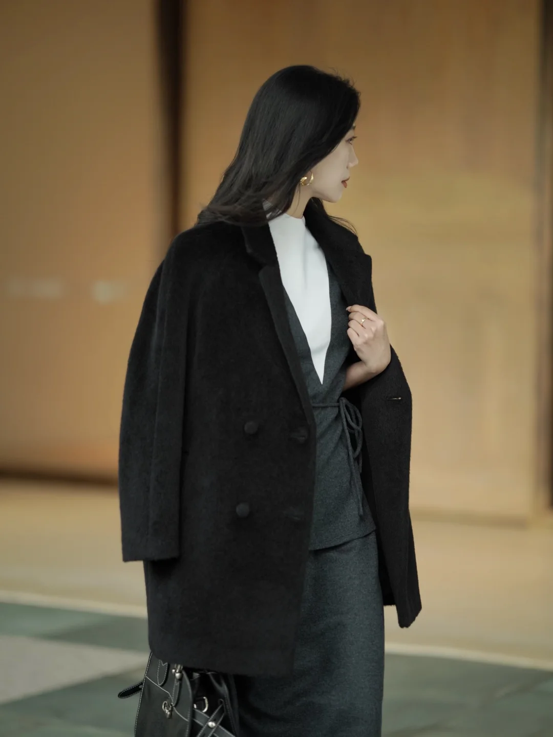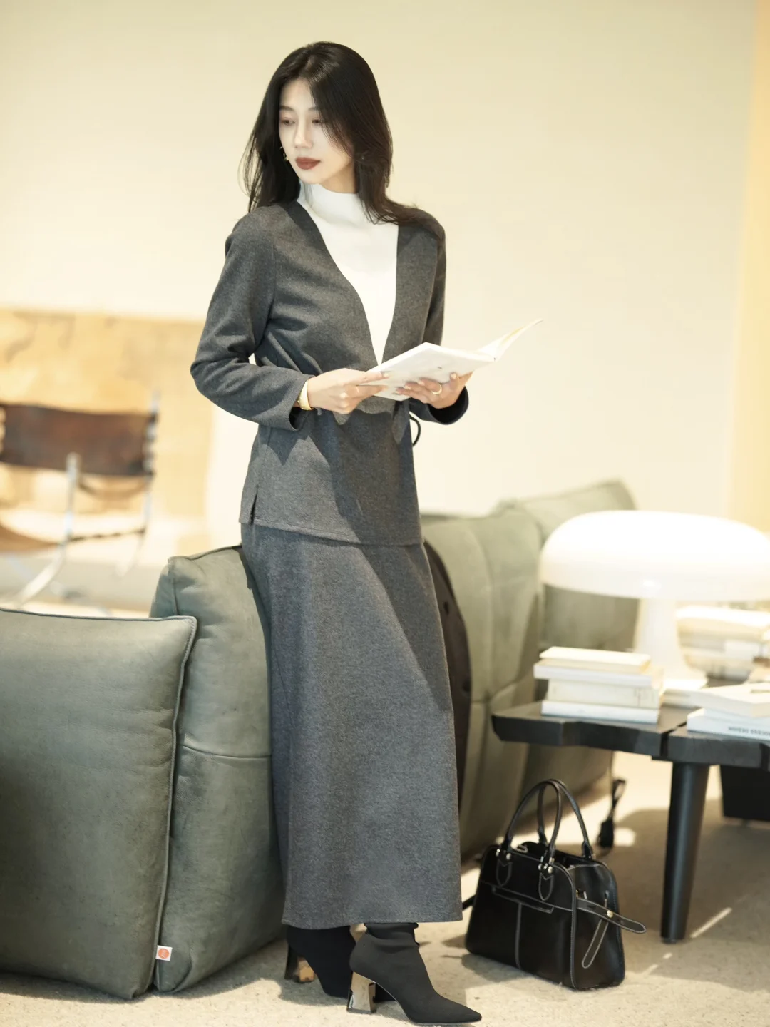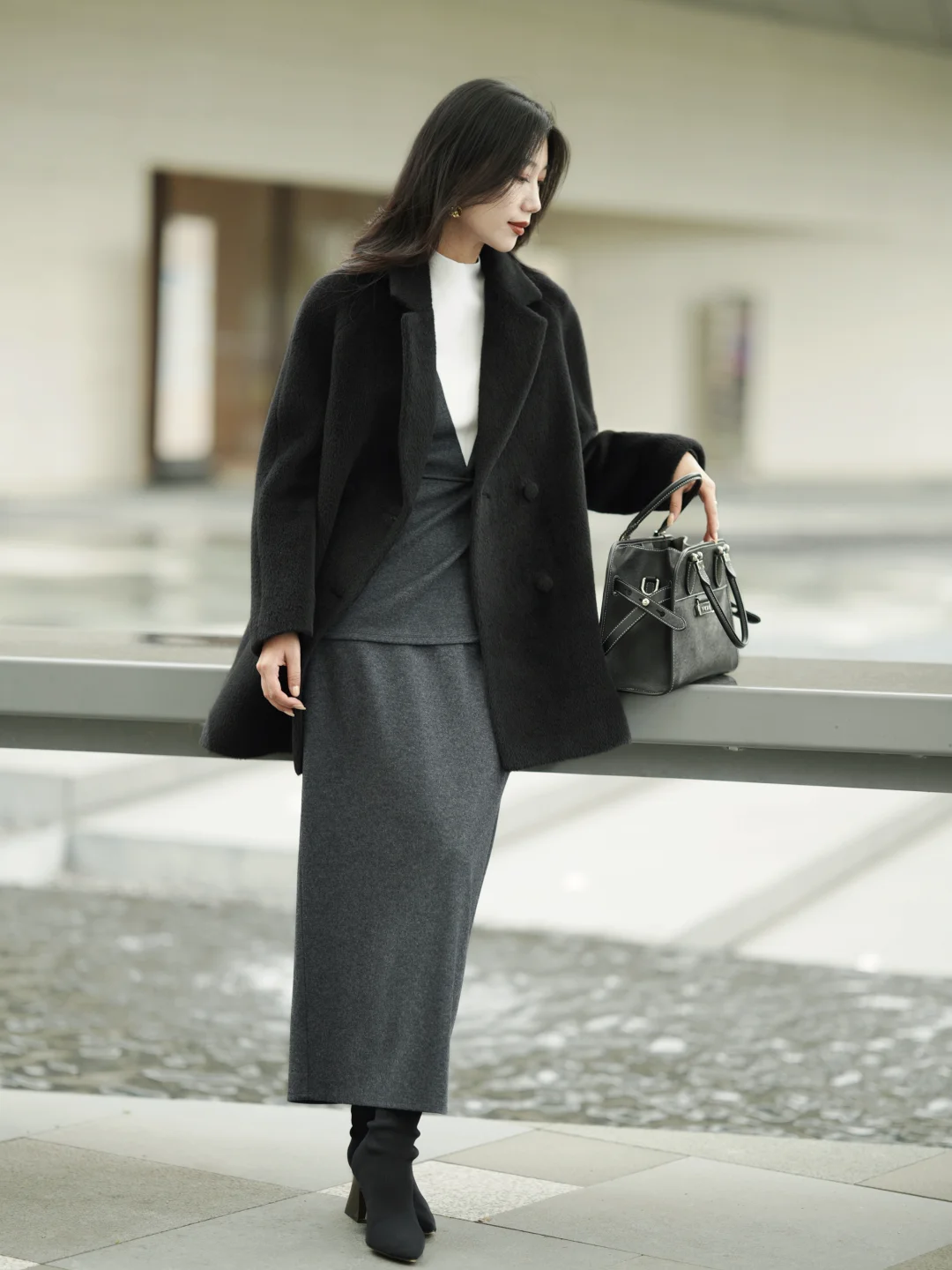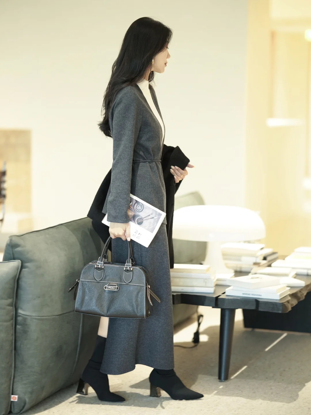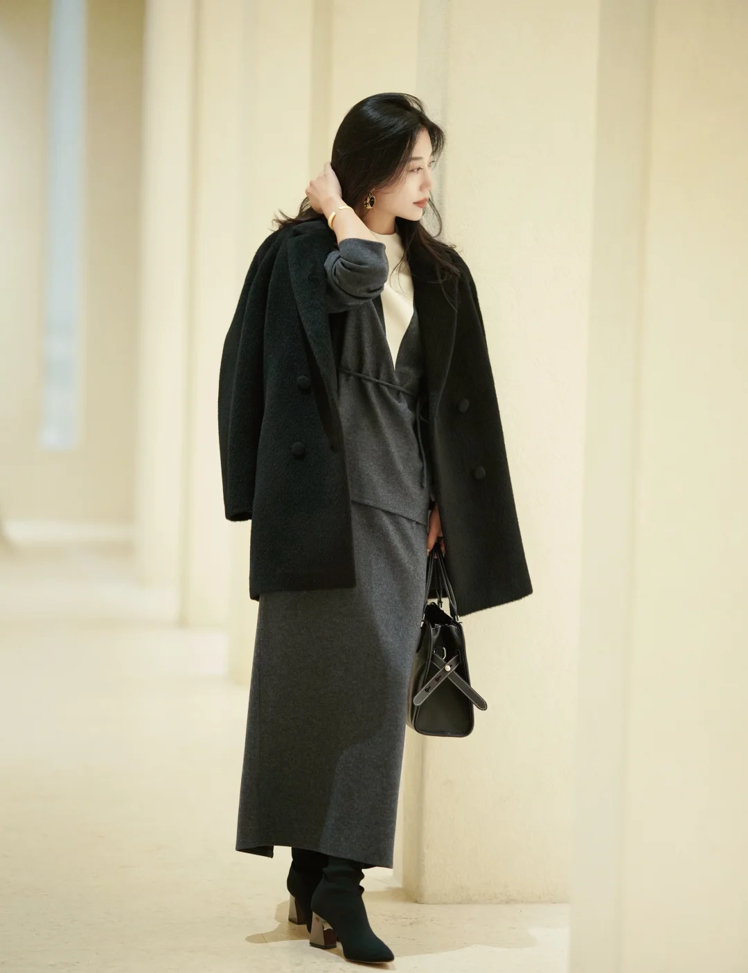 步入三十五岁,渐渐懂得衣装是内在心境的延伸。 秋凉时节,一件西装领双排扣羊驼毛大衣。便成了从容的伴侣。 柔润的温暖包裹肩颈,经典剪裁勾勒出利落轮廓——那不只是御寒,更是一份不疾不徐的底气。 内搭灰色羊毛套裙,细腻质地与大衣相融。漫步艺术空间,在画作与光影间流连,衣摆轻扬。此刻,穿搭与心境一同沉静下来;无需言语,身体感知的是面料承载的温柔,线条诉说的永恒。 好的衣物从不是束缚。它让你在展厅里专注品读美,步入会议室时沉稳自信,转换于不同场景却始终自洽。这个年纪,终于明白:真正的质感,是外衣的妥帖,更是内心的从容。