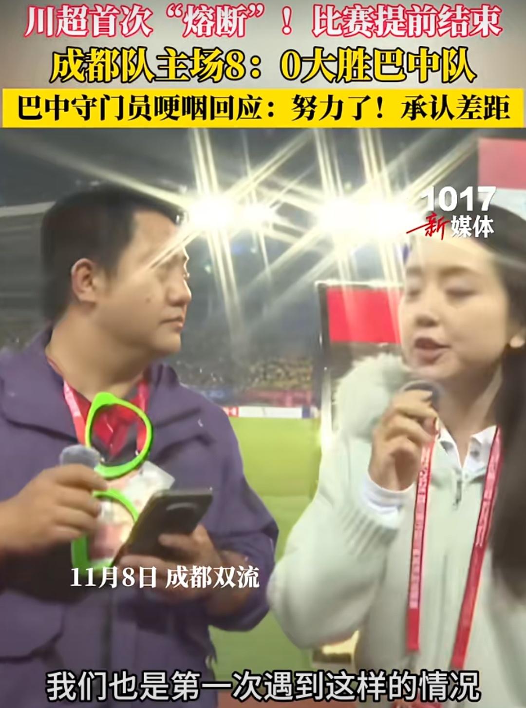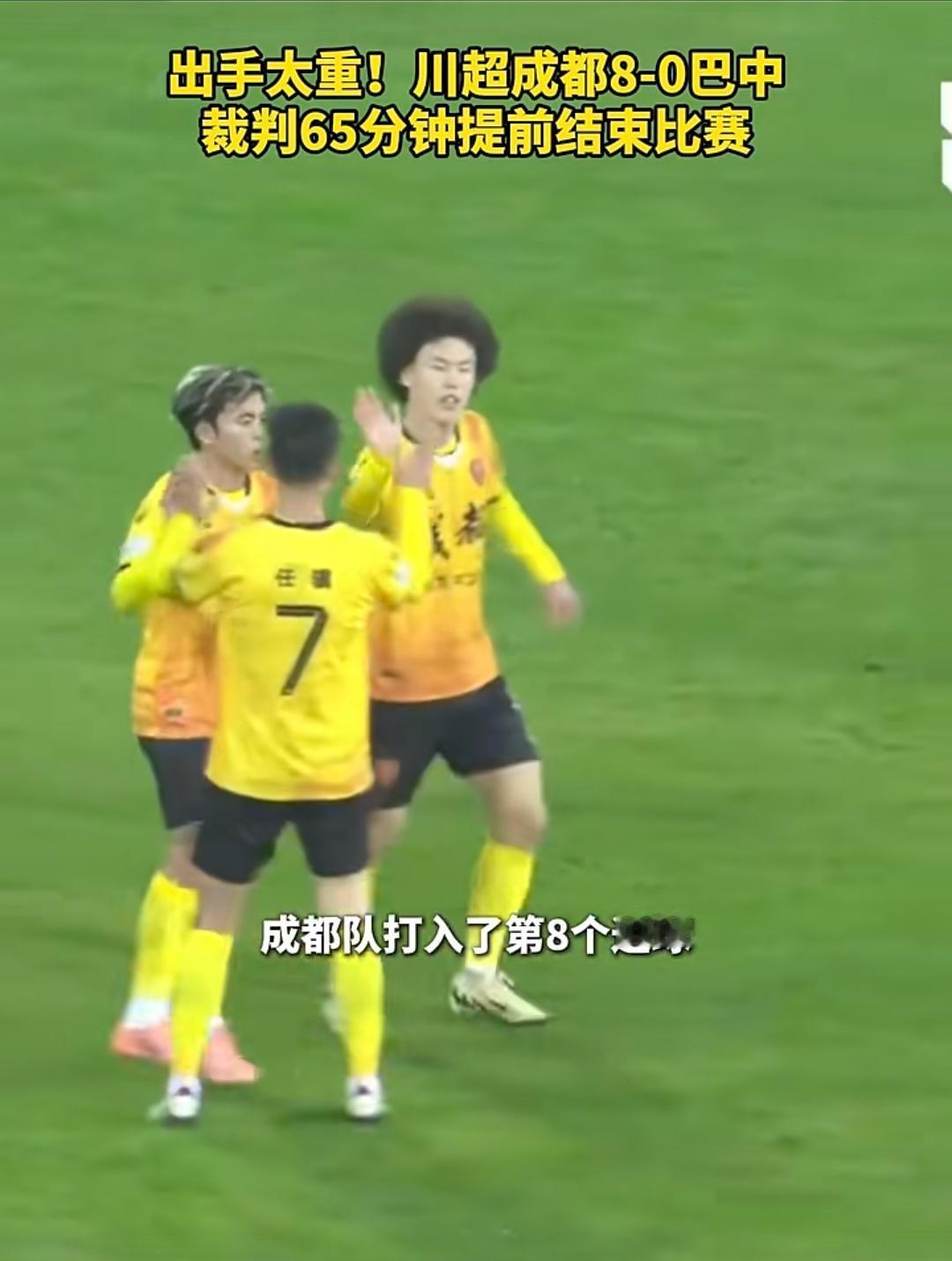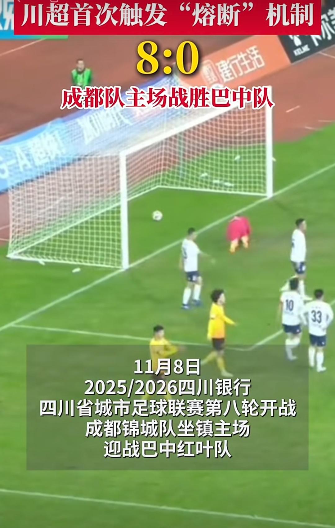 哀其不幸,怒其不争! 没想到第一次知道足球“熔断”机制是因为巴中,在8日川超比赛中,成都对战巴中在第65分钟打出8-0,提前吹响结束哨声,有人评论说原来巴中是这么来的(八终),但巴中表现还是值得鼓励,明知道跟成都比赛不是一个量级,就像一个总想考试100分得到表扬的孩子,虽然没有成功但需要鼓励和发展。