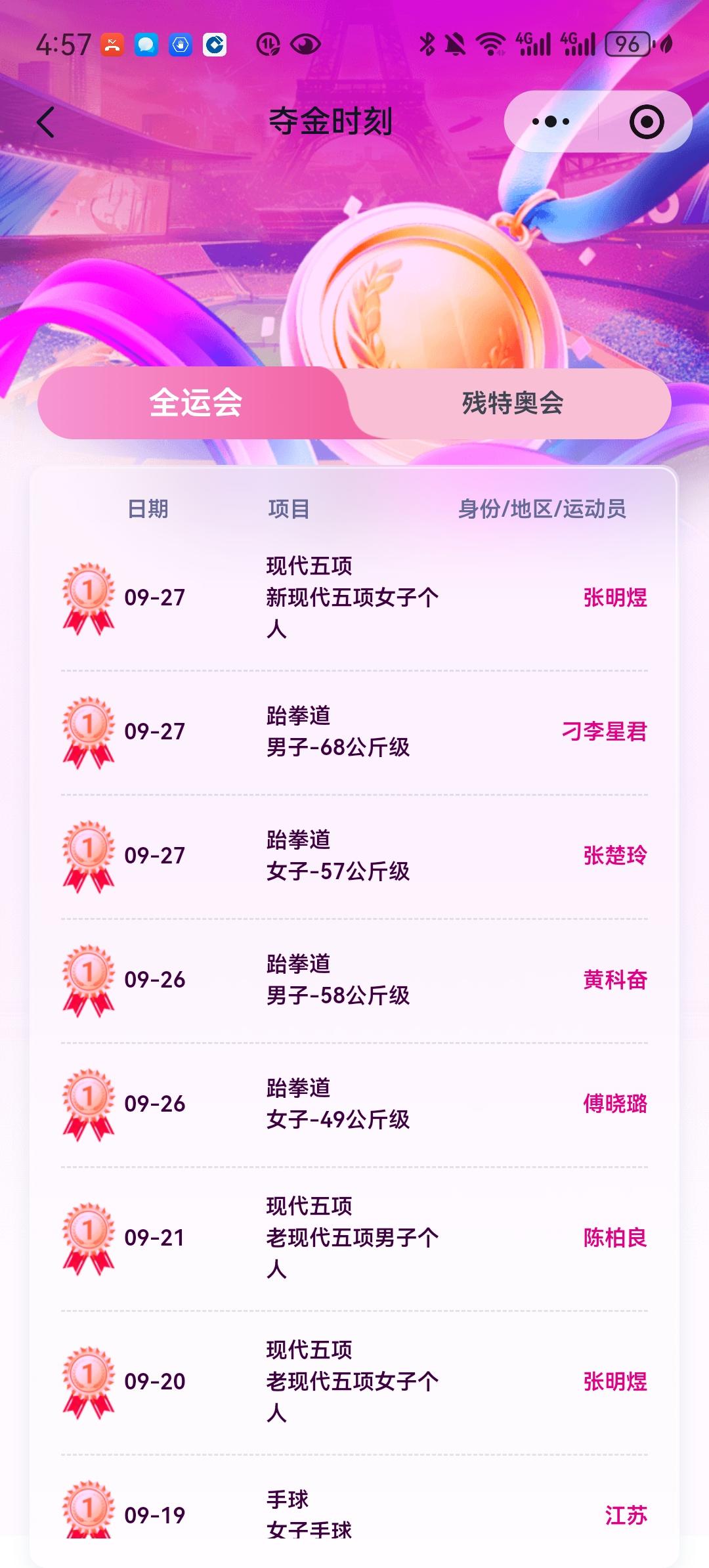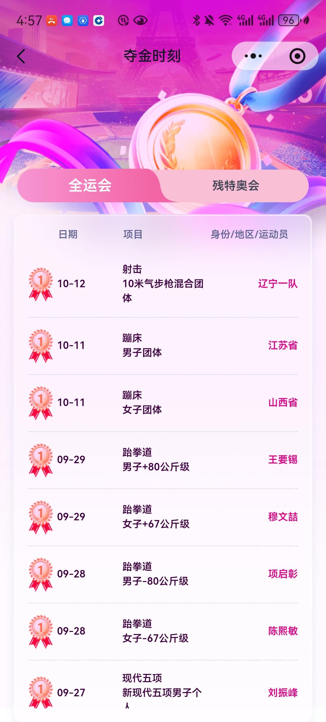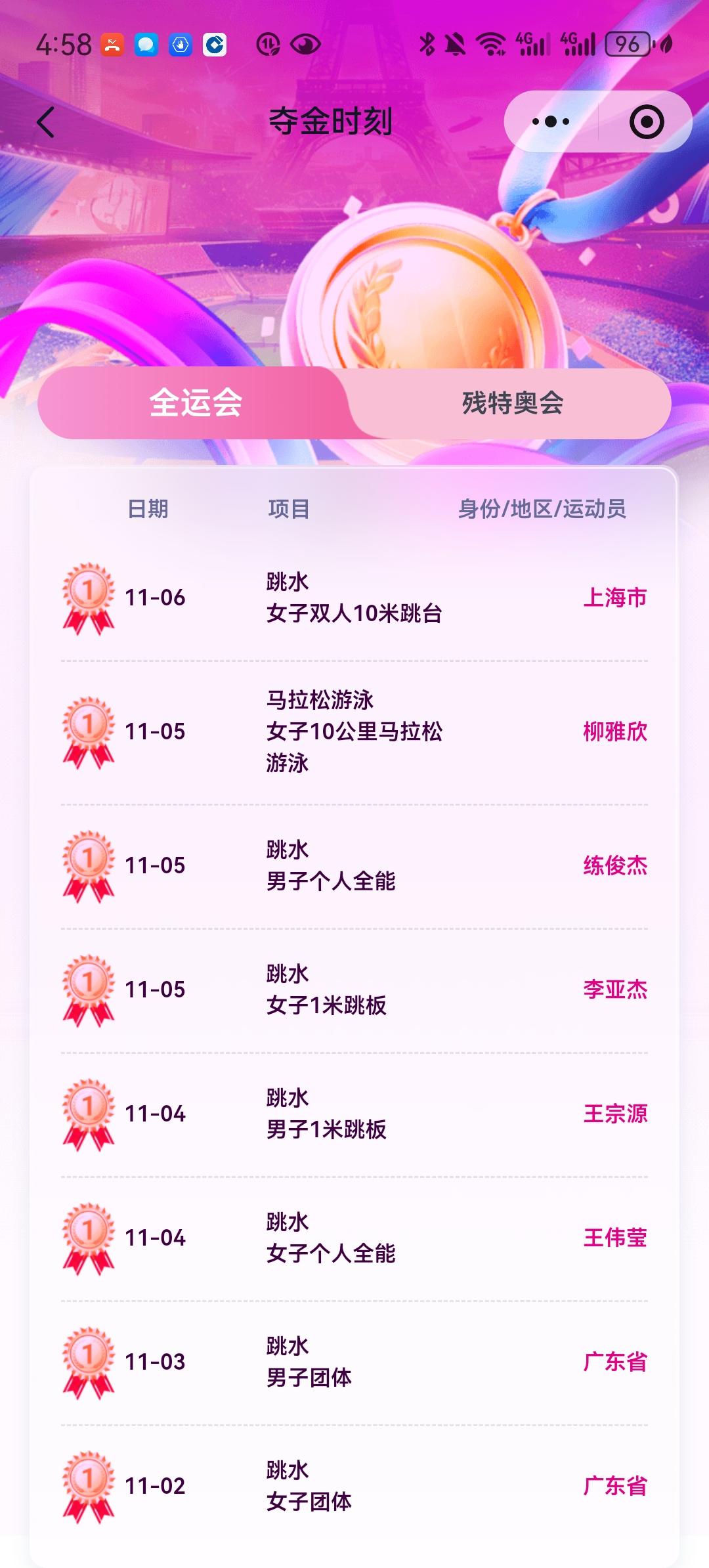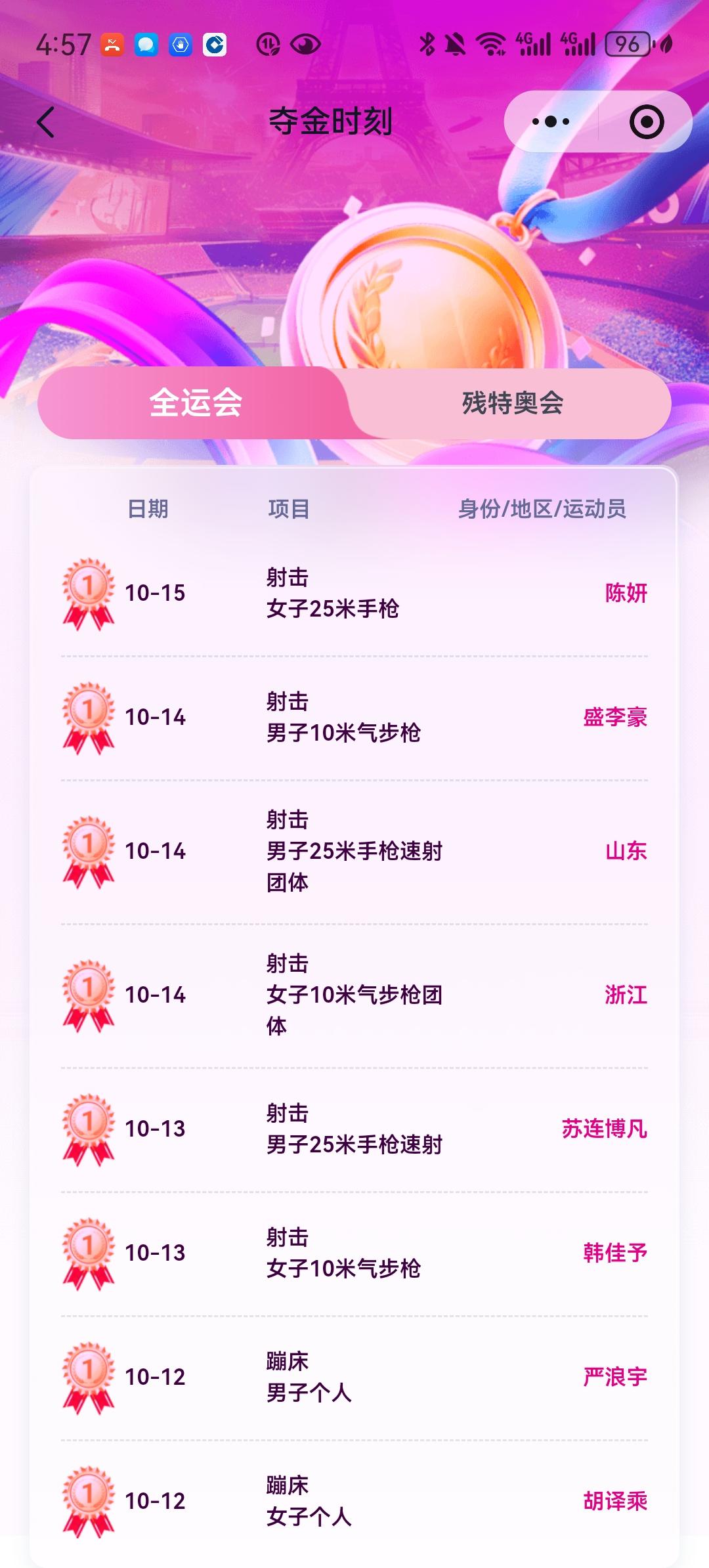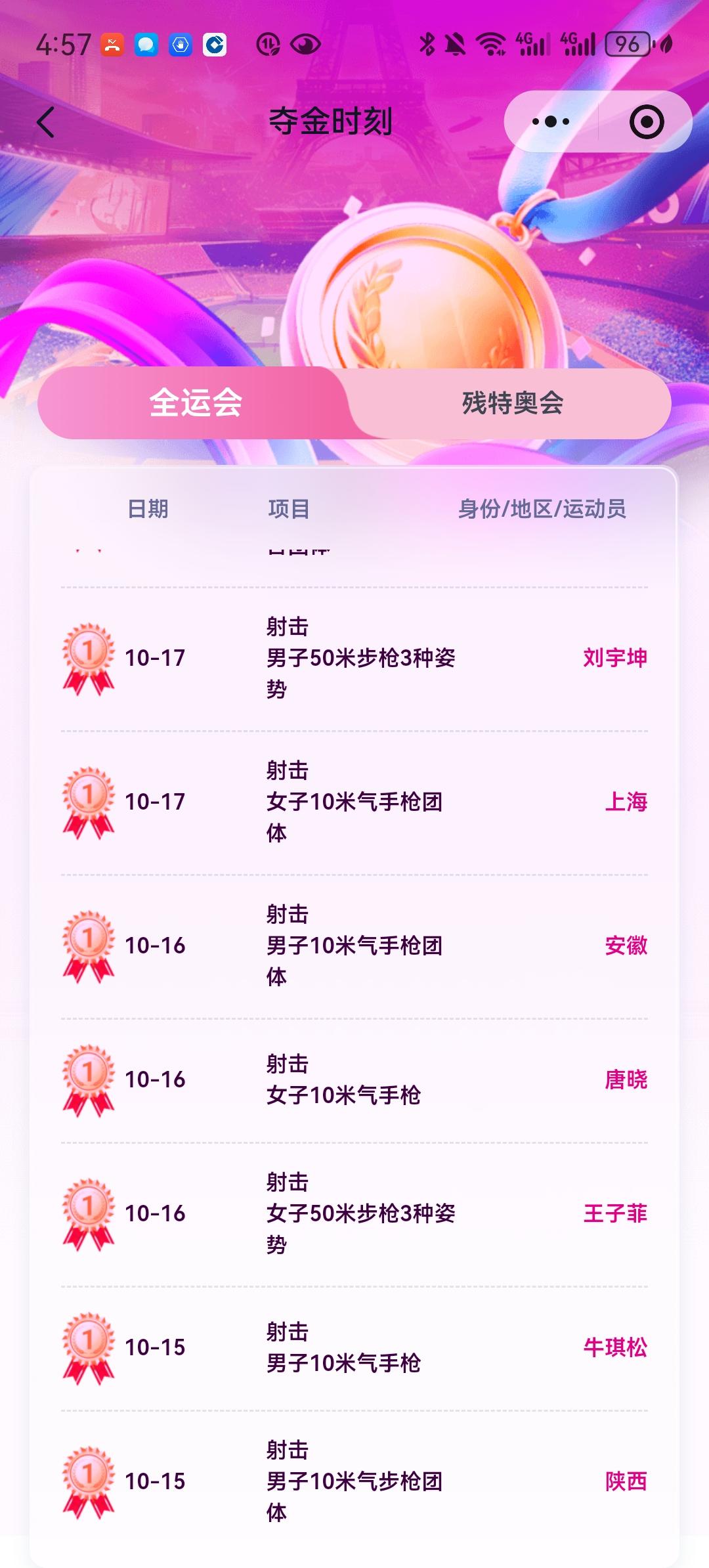 本届全运会开幕前累计已产生了77枚金牌,占到总金牌数419枚的18.4%,接近五分之一了。真的是九宫格都放不下了。实际上这届全运会真正的首金,是在6月10号产生的U16女足金牌。当然,在开幕式前产生的金牌,除了射击和跳水的部分项目算是热门之外,基本都是些冷门项目或者青年组级别。真正的好戏还是绝大部分在开幕式之后才开始。