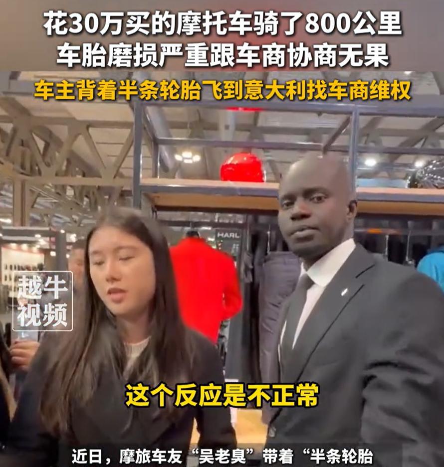 遇到狠人了!一位博主花30万在4S店购买了一辆宝马摩托车,结果只行驶了800公里,轮胎就出现了严重的磨损,找到4S店商讨没有结果,男子干脆办了签证,背着半条轮胎飞到意大利米兰摩托车展,找到宝马总部维权去了。 在广东,一位吴姓摩托车爱好者,花了30万元买了一辆宝马摩托车,本以为这是一次高端的购买体验,但事情却因为一条轮胎而彻底改变。 骑行仅800公里后,他发现后轮胎出现异常:中心部分被完全磨平,而两侧边缘还留着新胎的胎毛。 这种情况对有经验的骑手来说,很明显不是正常磨损,车主心里立刻打起了算盘:轮胎明显存在质量问题。 他第一时间联系了4S店,却只换来一句“轮胎是易损件,不在三包范围内”,这让他既愤怒又无奈,心里充满了不甘。 为了保留证据,他决定将轮胎锯开一半,带回去作为物证,当4S店接收了半条轮胎后,超过两个月都没有任何反馈,维权过程也因此变得异常漫长。 这半条轮胎进入维权流程后,车主先是联系4S店,遭遇推诿,然后通过宝马官方客服多次沟通,却只能得到标准化回复,没有任何实质解决方案。 即便将问题上报至总部和轮胎制造商,意大利宝马总部,与轮胎厂家之间依然互相甩锅,责任始终被搁置。 车主联系国内多家检测机构,结果都因“不接受个人送检”或者害怕得罪品牌方而被拒绝,他向消费者协会投诉,也被繁琐流程和推诿挡回原点。 轮胎在维权过程中,每到一个环节,都让车主体会到作为普通消费者的孤立无援,也让更多人意识到,在面对跨国品牌时,个人维权的难度之大。 而且,车主调查发现,自己在中国市场买到的摩托车配的是象牌轮胎,而欧洲市场的同款车型使用的是米其林轮胎。 更关键的是,这款象牌轮胎在美国曾因安全隐患被召回,这些发现让事情不仅仅是质量问题,而上升到品牌歧视、市场差别待遇的层面。 车主没有选择继续默默承受,而是将半条轮胎装入行李箱,飞往意大利米兰国际摩托车展,在宝马展台前公开展示。 他录制视频上传网络,详细记录轮胎异常情况和维权经历,通过社交媒体的传播,这条轮胎的信息迅速扩散,形成舆论压力。 每一次点赞、转发,都在放大车主的声音,也迫使品牌不得不正视问题。 最终,宝马中国不得不做出回应:主动联系车主,报销维权产生的全部费用共计9120元,并派专人上门更换了一套全新的米其林轮胎。 事件最终说明了简单重要的道理:品牌的全球声誉不仅取决于广告和口碑,更取决于每一次面对问题时的处理态度。 轮胎事件证明,哪怕是一个小小的零件,只要被认真对待,也可以成为维护消费者权益的利器。 对于跨国品牌来说,尊重每一个市场的消费者、消除双重标准,不仅是公平问题,更是风险管理和声誉维护的必修课。 信源:越牛视频