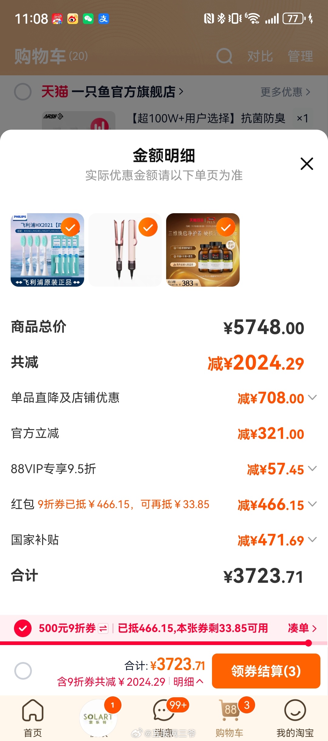 天猫今年的力度挺给力的!家里装修完,趁着国补,然后叠加我的88VIP,囤了不少家电家居产品。而且今年的双十一也很简单,就是领券+领国补,不用瞎凑,有多少就加购多少,一把清购物车就完事了,反正国补+88VIP通用券最后结算的时候勾选上都能实现减价,能把优惠打到最大。趁今年双十一,该置办的都置办掉,再不买又要等一年了,而且明年国补力度还不确定呢!