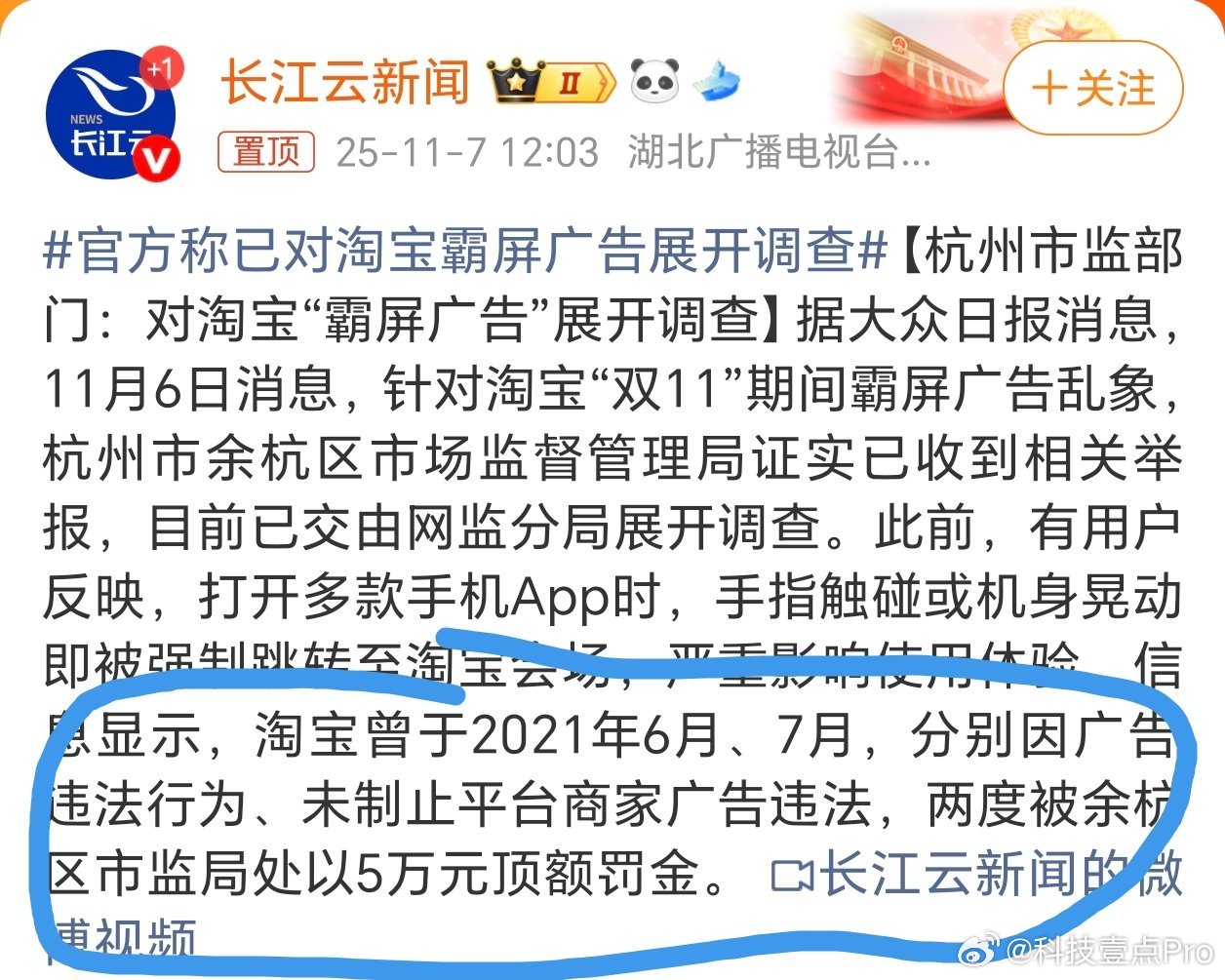 官方称已对淘宝霸屏广告展开调查之前才罚了5万块啊,这对淘宝来说是不是毛毛雨,一点不疼啊[二哈]