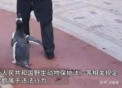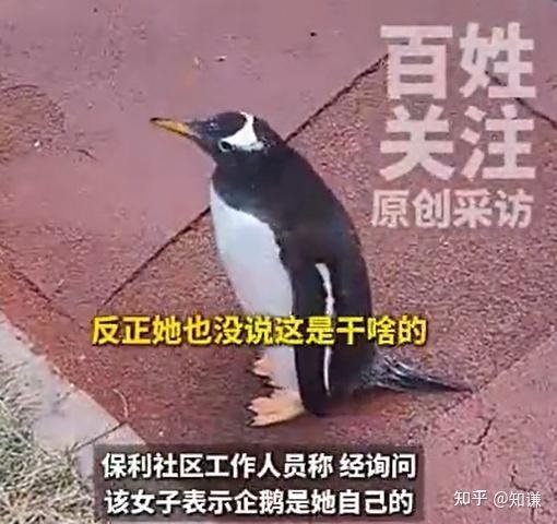 哈尔滨一小区有人遛企鹅,女子自称企鹅属个人所有。挂个红🧣围巾不就是qq宠物了。