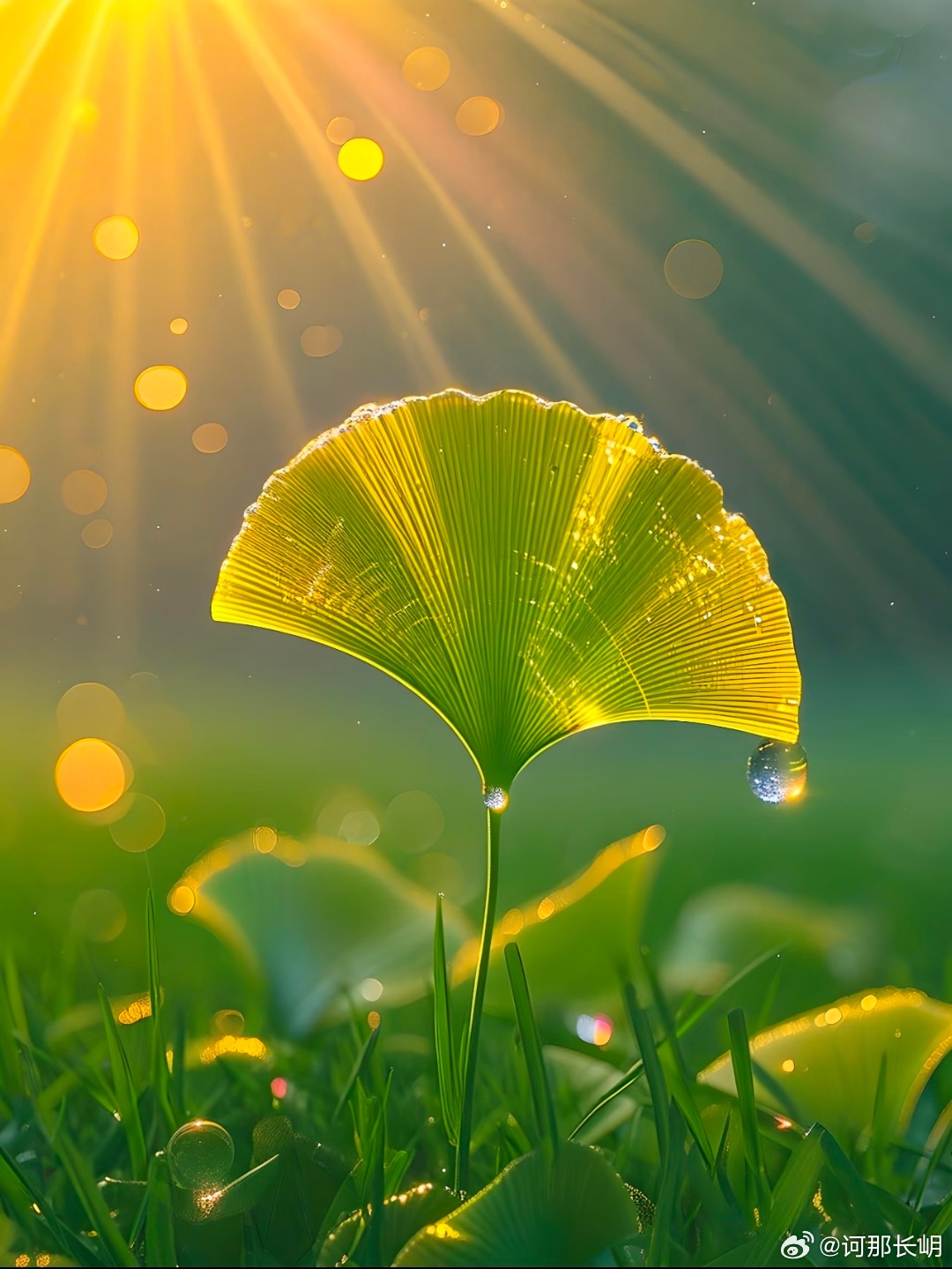 阳光温柔地洒在银杏叶上,每一片叶子都像是被镀上了一层金色的光晕。露珠在叶尖轻轻摇曳,它们是夜的泪珠,也是晨的珍珠,静静地诉说着季节的更迭。银杏树下,一切都显得那么宁静,阳光透过缝隙,斑驳陆离地铺在地面上,仿佛是通往童话世界的路径。在这样的光影交错中,心灵得到了片刻的安宁,所有的烦恼似乎都随着露珠的滑落而消散。银杏树下,我们与自然同呼吸,感受着岁月静好,心灵也随之得到净化和治愈。