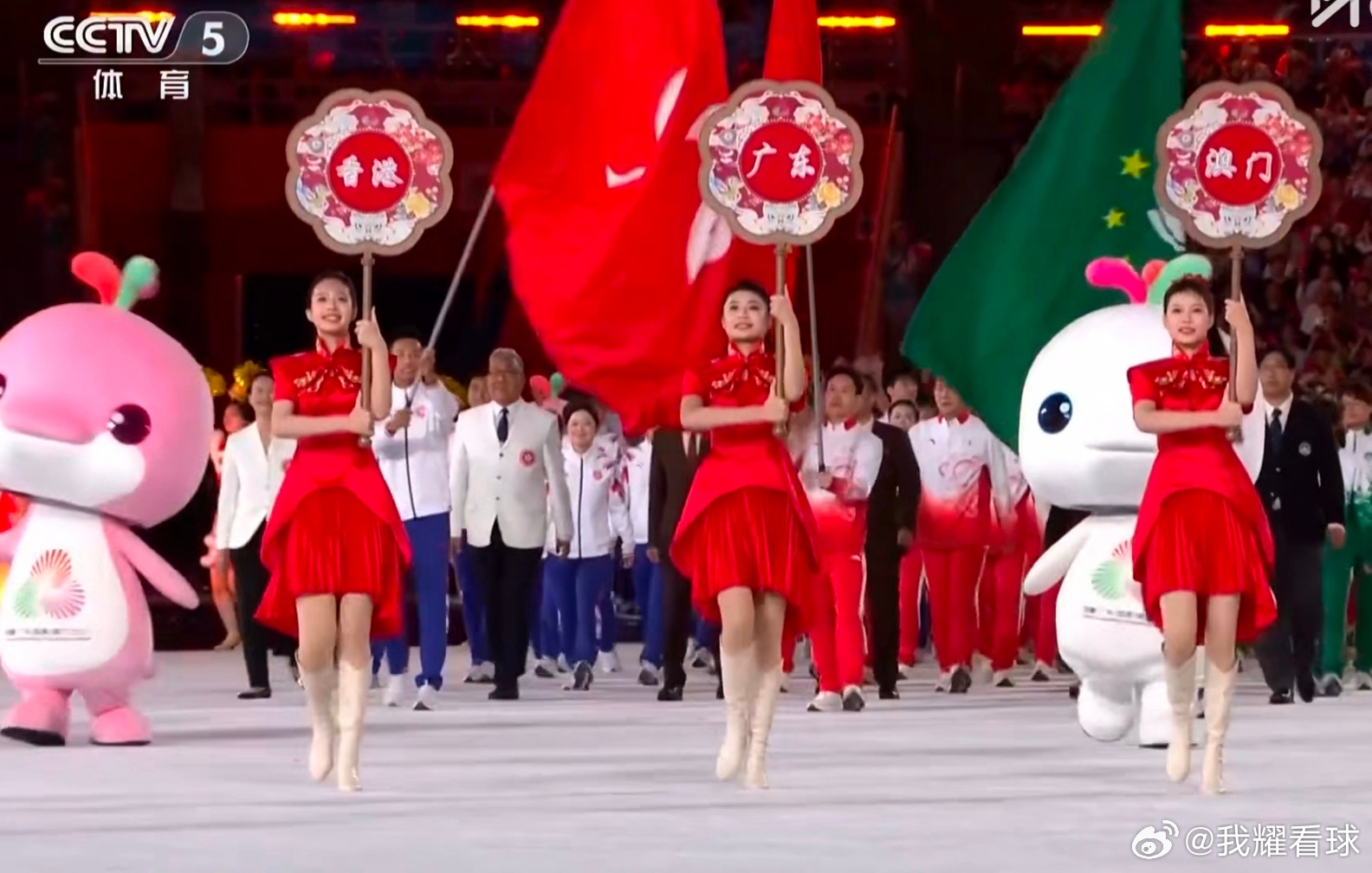 广东代表团来了[打call]!东道主广东、香港和澳门一齐压轴亮相,现场观众都沸腾了,广东队旗手是来自汕头的跳水奥运冠军谢思埸,运动健儿加油,粤队冲啊!全运会开幕式 为广东加油 全民聊全运
