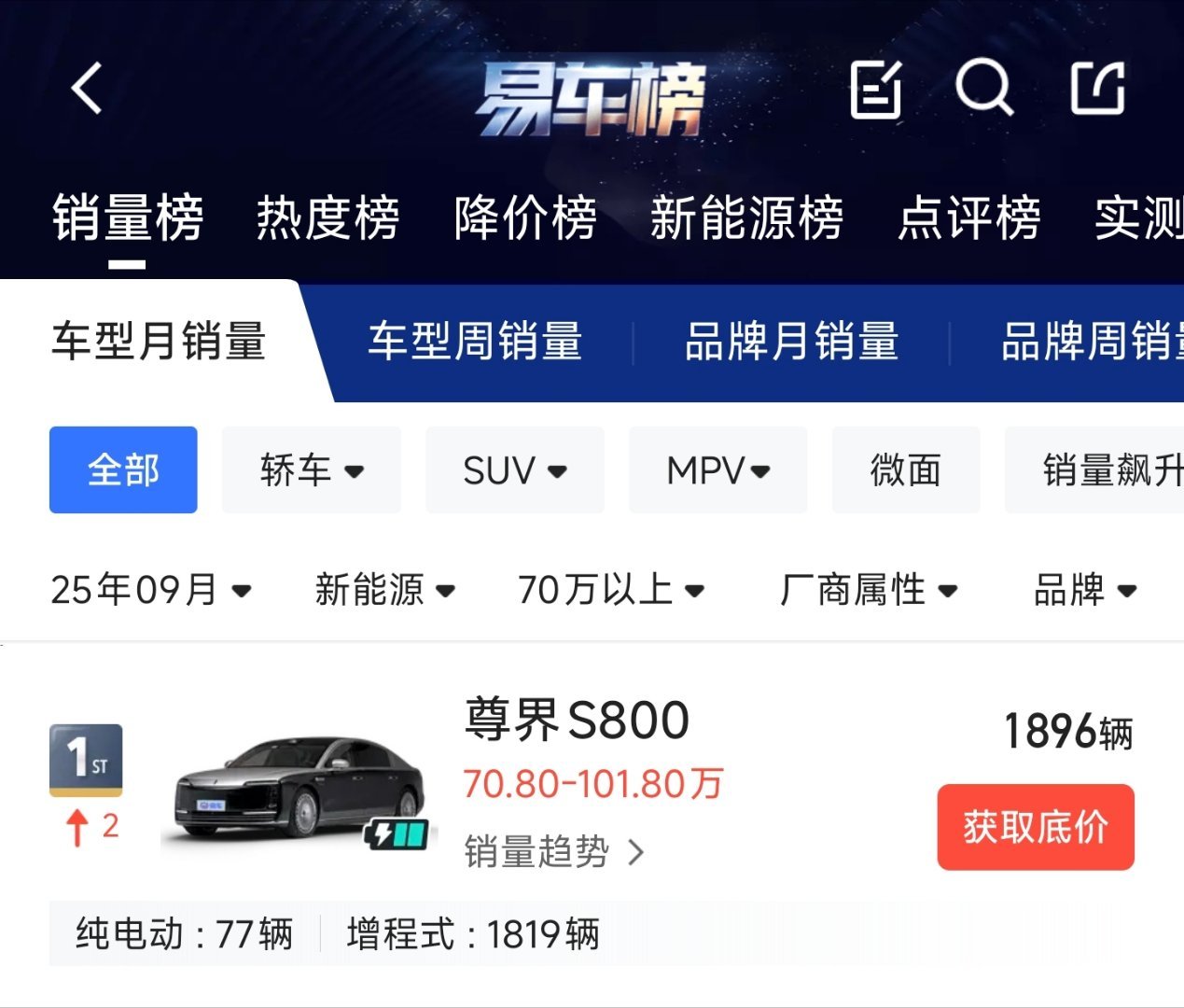 还别说,只要销量能保持下去,尊界S800在70万以上的新能源车市场就是“独孤求败”了[酷]
