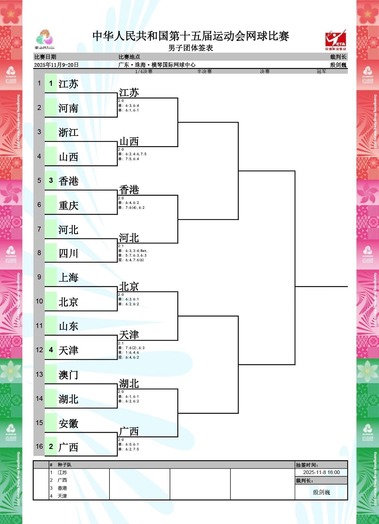 头号种子北京队派出施晗、张瑞恩出战,两人均直落两盘过关,帮助北京队以2:0击败江苏队。