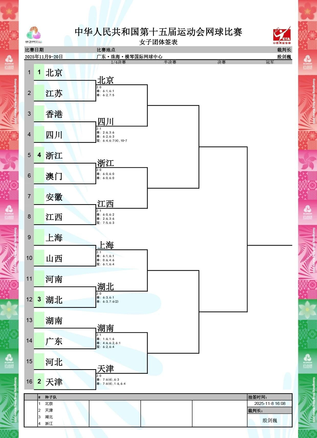 北京队2:0击败上海队,成功迎来开门红,其中商竣程6:3、6:1战胜朱世勋,迎来个人在全运会的首胜。