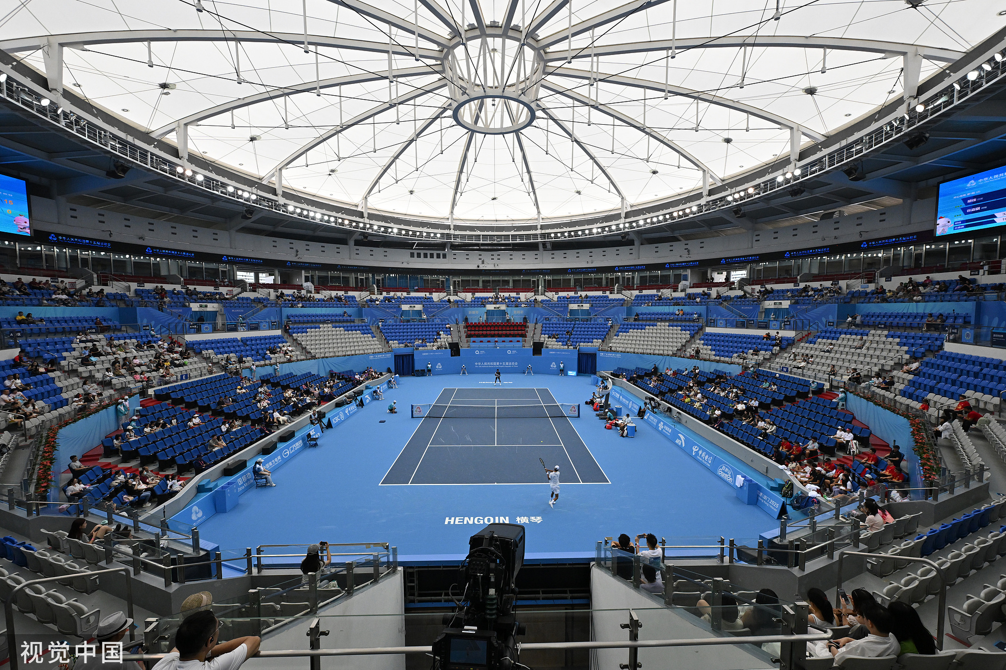 粤港澳三地同框画面有多燃第十五届全国运动会正式开幕了,网球比赛今天上午也开始了
