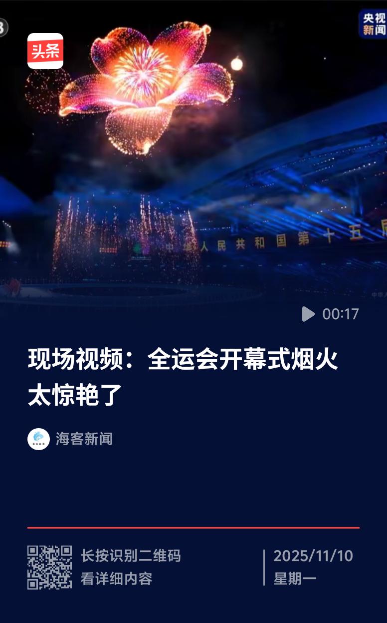 十五运会开幕式的烟火真的绝了!从“同根同源”到“同心同缘”再到“同梦同圆”,内容层层递进,设计新颖独特,让人眼前一亮。这场开幕式完美展现了“国际水准、中国气派、岭南风韵、湾区魅力”。 而且这次盛会从各方面都由粤港澳三地力量共同完成,生动诠释了“湾区同心”。全运会火炬在香港、澳门、广州、深圳四地同步传递,就是这种精神的体现。三地合办全运会,能优化资源配置,还能拉近三地人民的距离。十五运会不仅是体育盛会,更是促进“心联通”的好契机。 十五运会开幕式 十五运火炬传递