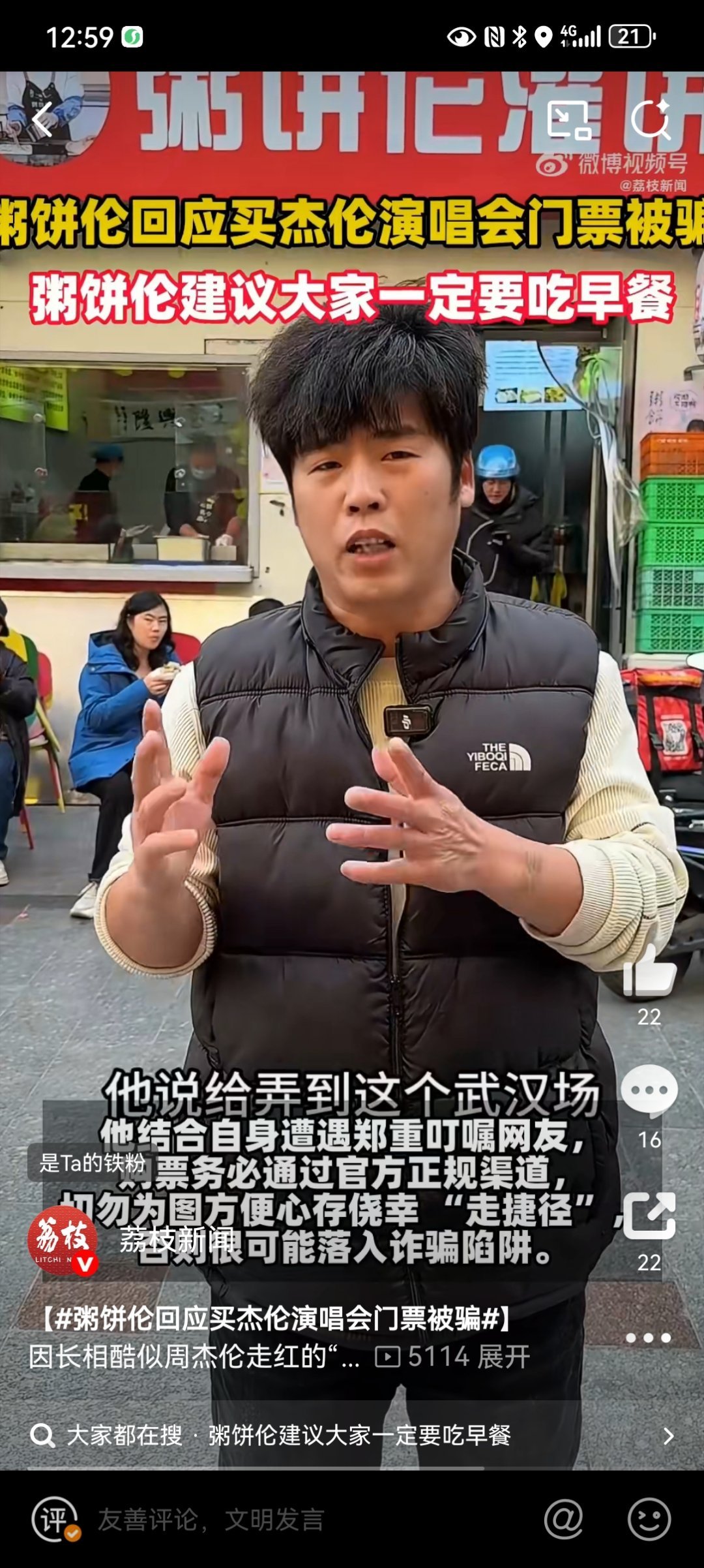粥饼伦回应买杰伦演唱会门票被骗“粥饼伦”的防骗提醒格外有说服力——作为网络红人,他坦诚分享自己被骗的经历,没有刻意维持“完美人设”,这种真实反而让防骗警示更接地气。更难得的是,他在提醒大家警惕诈骗的同时,还关心着大家的早餐和健康,这份朴素的温暖超越了单纯的事件本身。从“卖饼”到“防骗”,他始终保持着普通劳动者的本色,用最实在的方式传递着正能量:生活难免挫折,但踏实前行、照顾好自己才是硬道理。粥饼伦建议大家一定要吃早餐