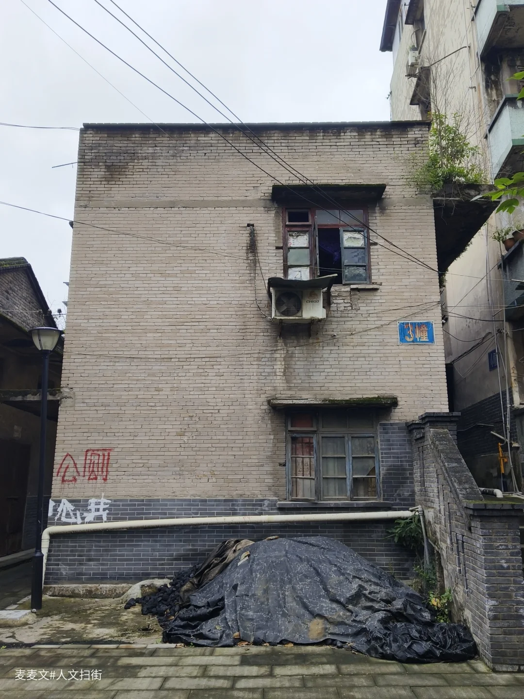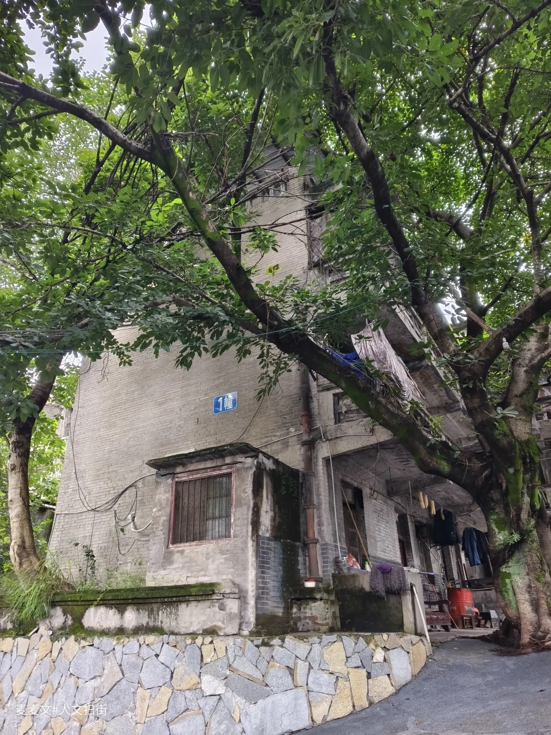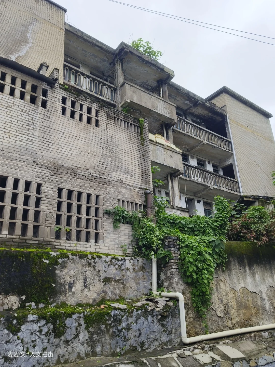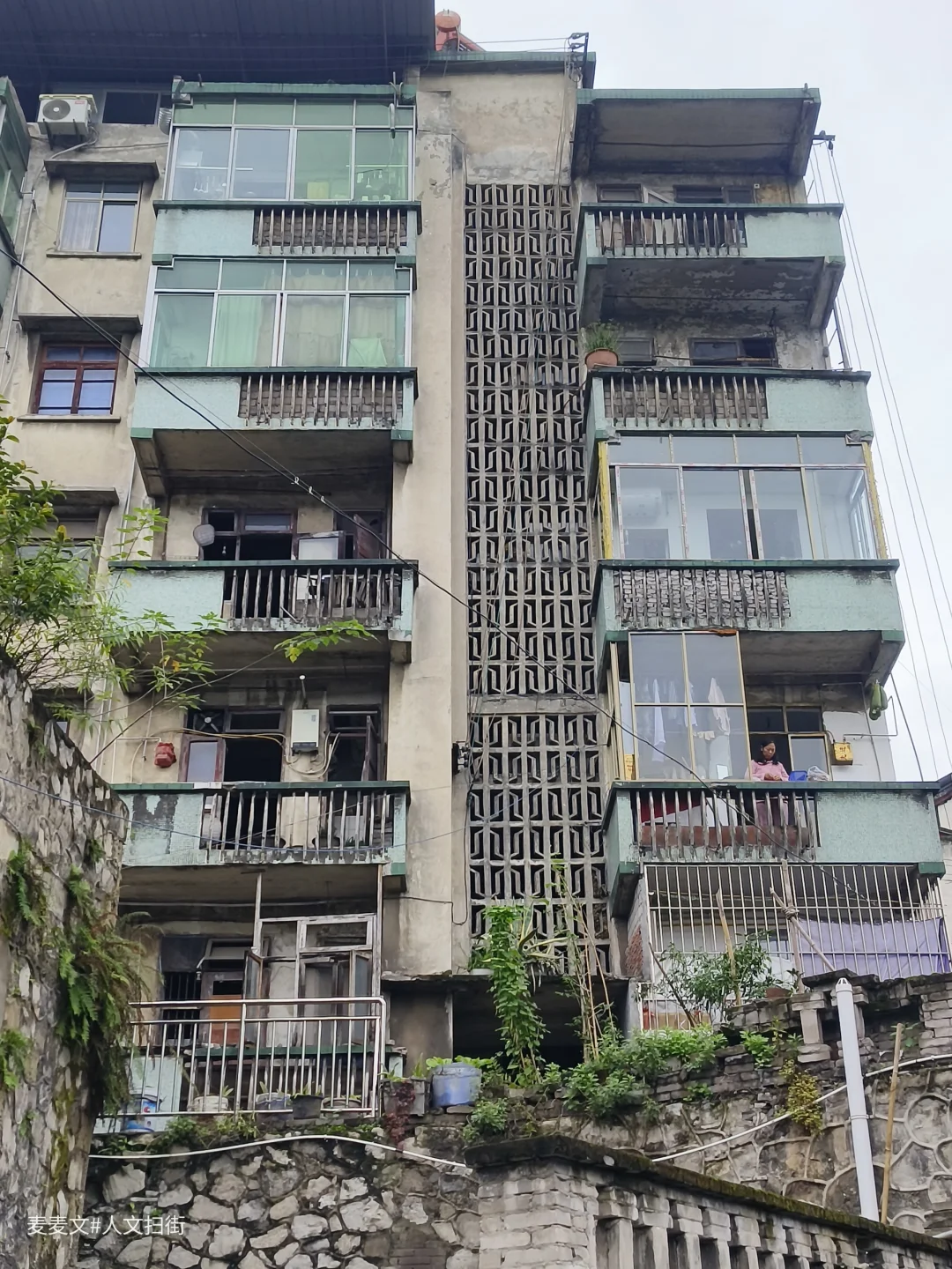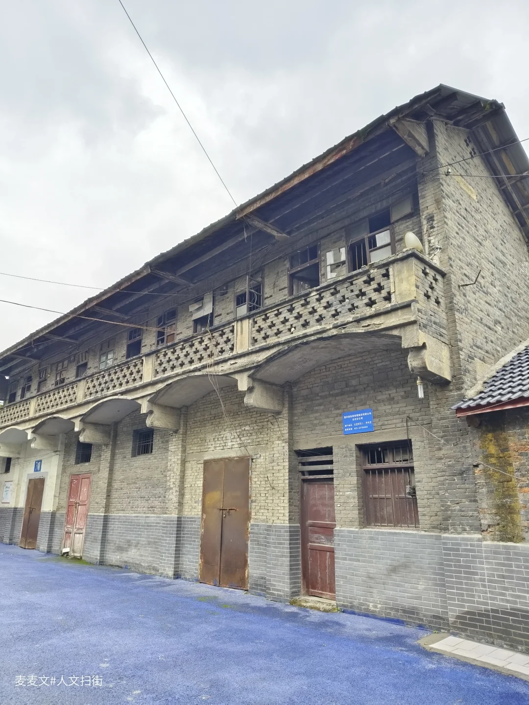 在重庆合川的盐井老街上,太平缸街深处藏着一段独特的岁月记忆——盐井粮库。老粮仓的建筑颇具年代感,连同家属楼共有八九幢房屋。踏入家属院,宁静氛围扑面而来。其中一幢青砖楼的L型镂空通阳台是一大亮点,简约又美观,历经时光打磨,仍散发着独特韵味。