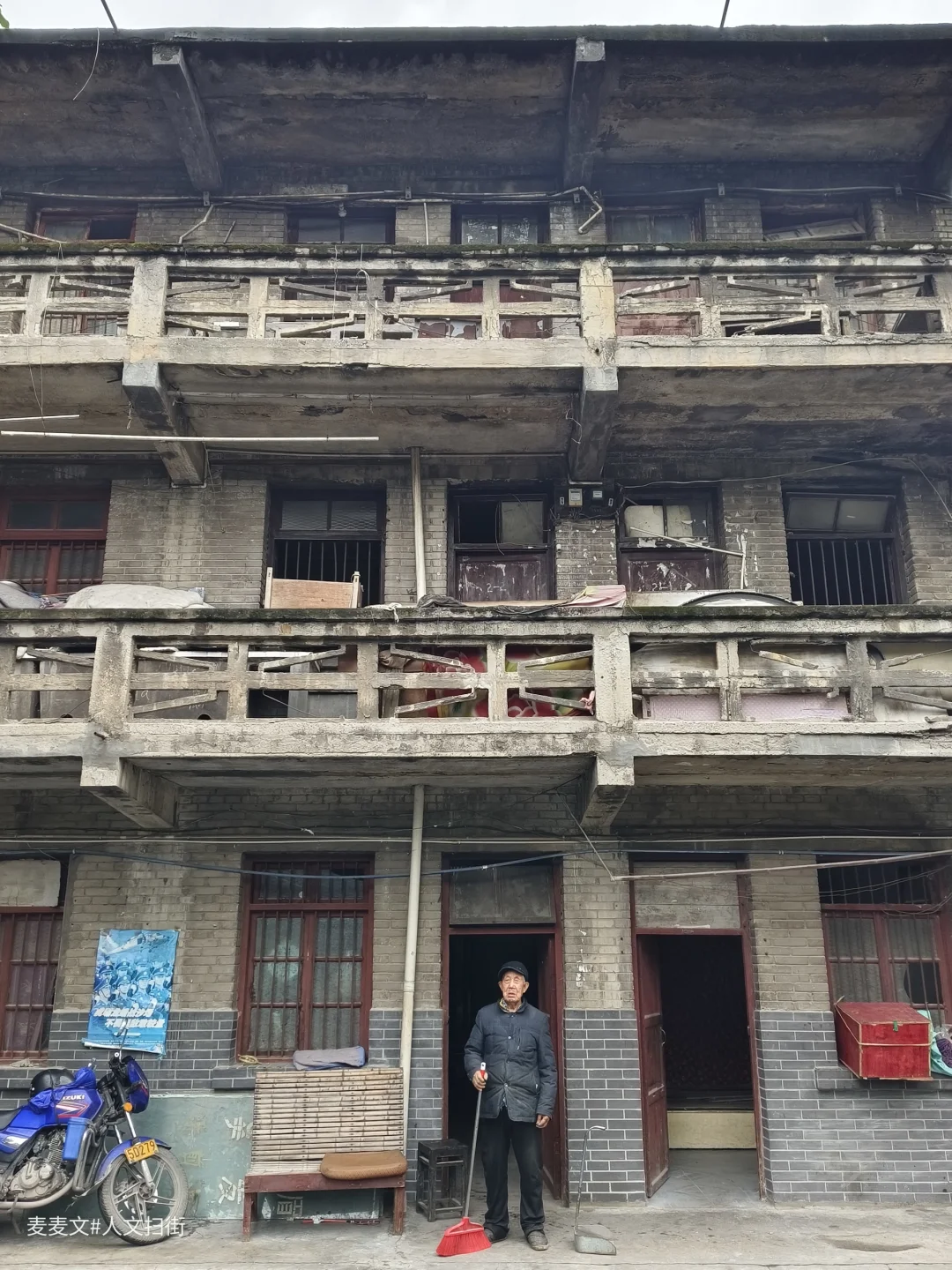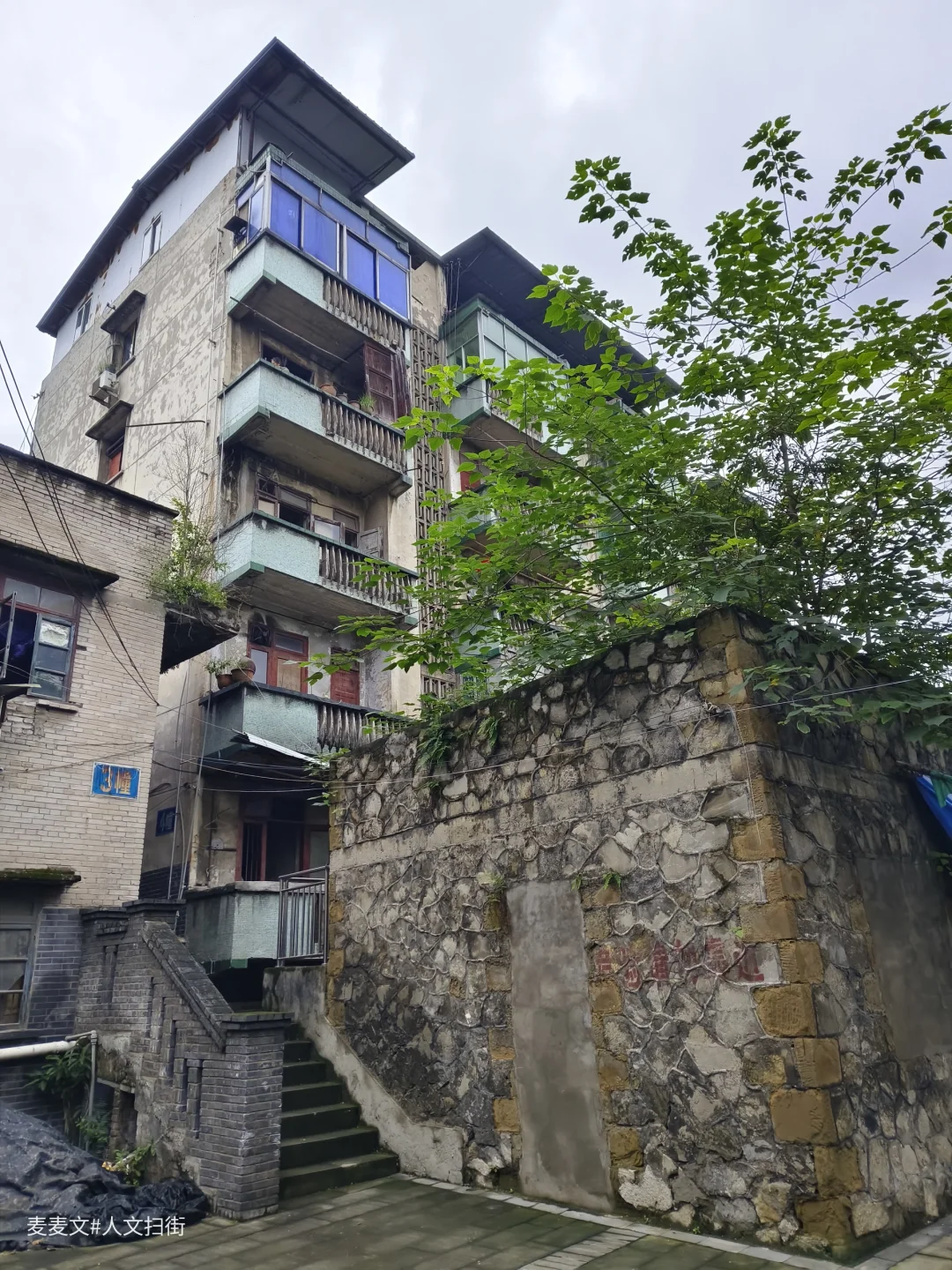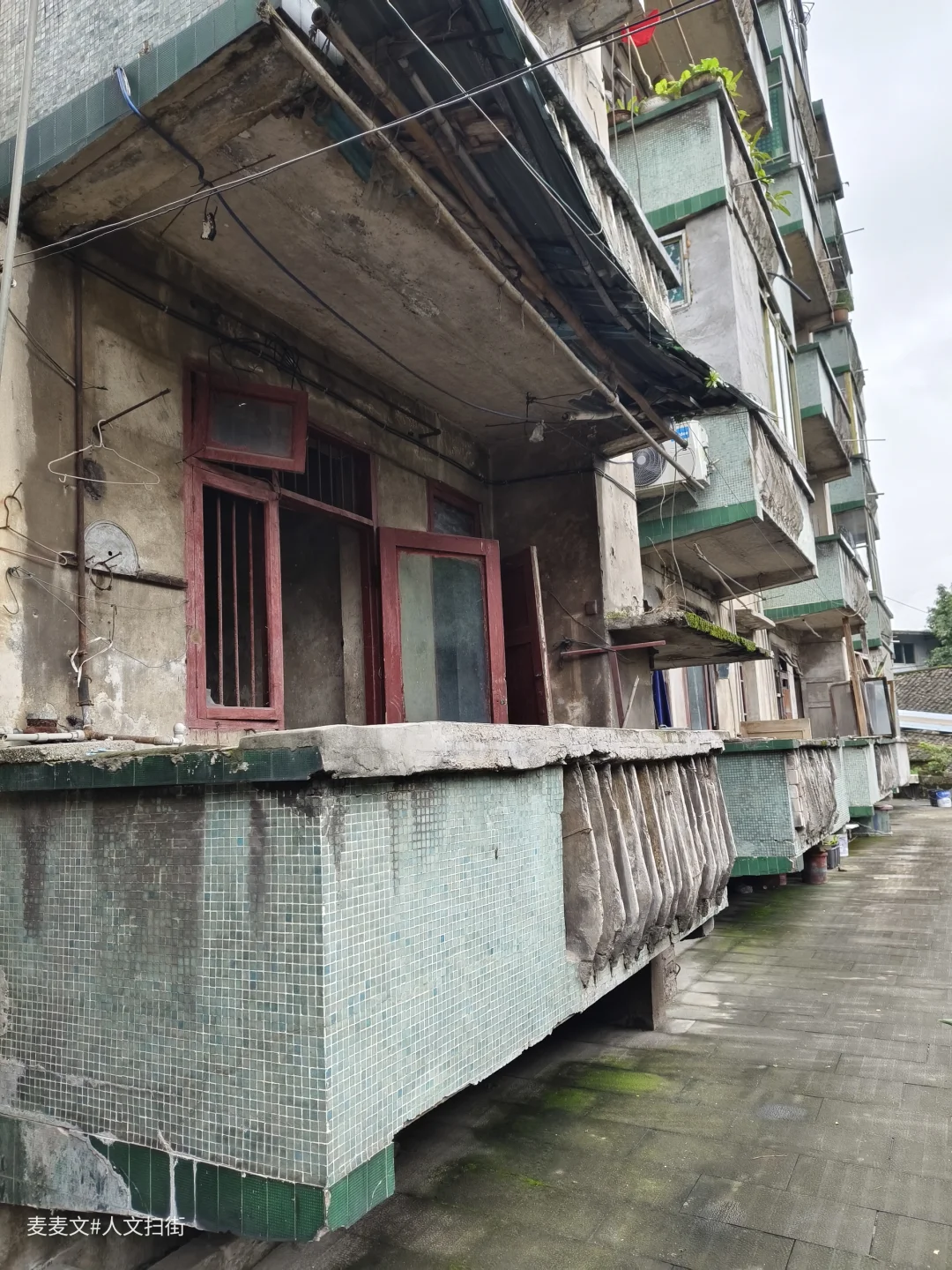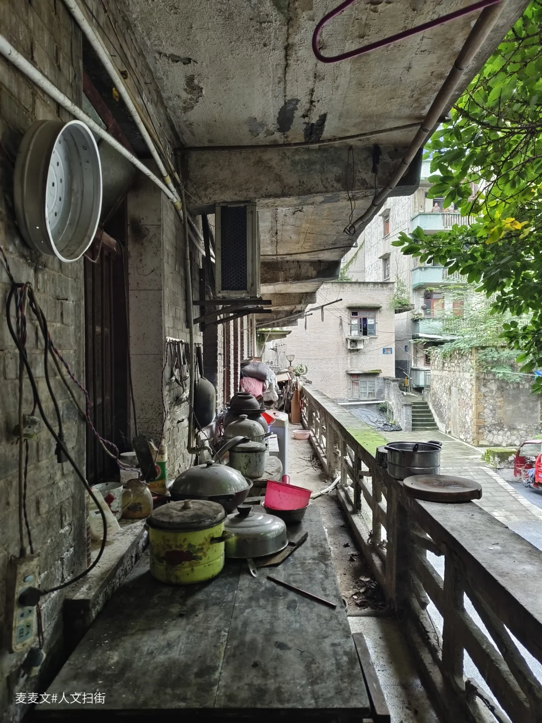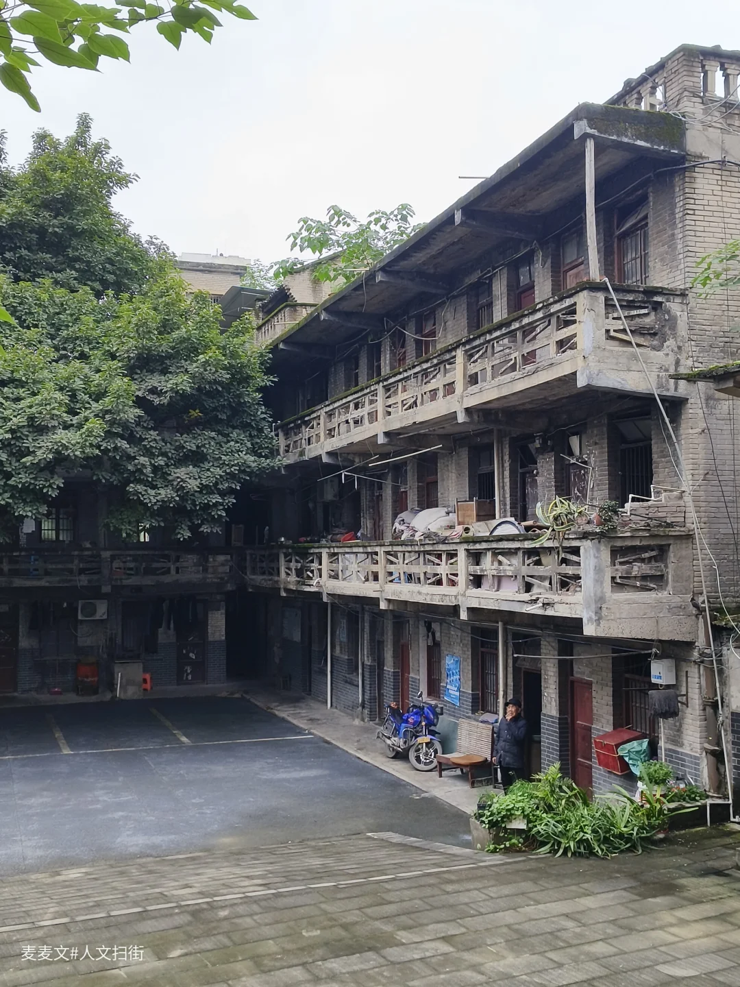 在重庆合川的盐井老街上,太平缸街深处藏着一段独特的岁月记忆——盐井粮库。老粮仓的建筑颇具年代感,连同家属楼共有八九幢房屋。踏入家属院,宁静氛围扑面而来。其中一幢青砖楼的L型镂空通阳台是一大亮点,简约又美观,历经时光打磨,仍散发着独特韵味。