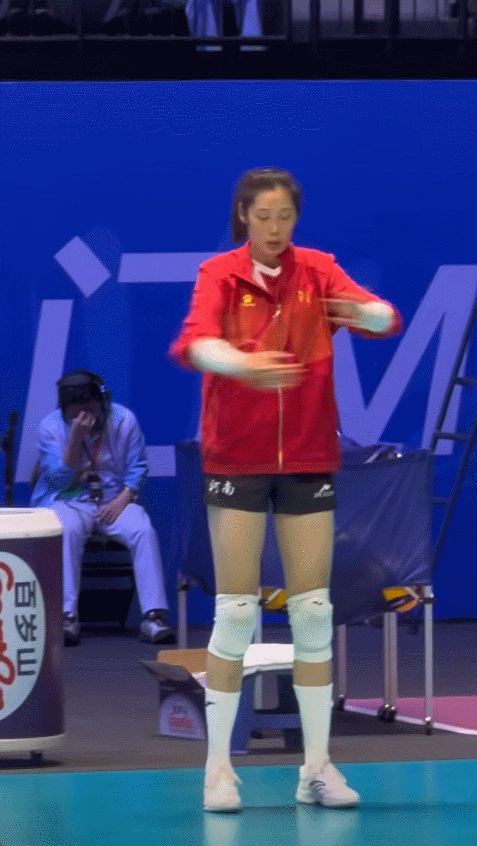 第十五届全运会朱婷河南女排与四川女排的比赛稍后开始,朱婷稍早之前的赛前热身