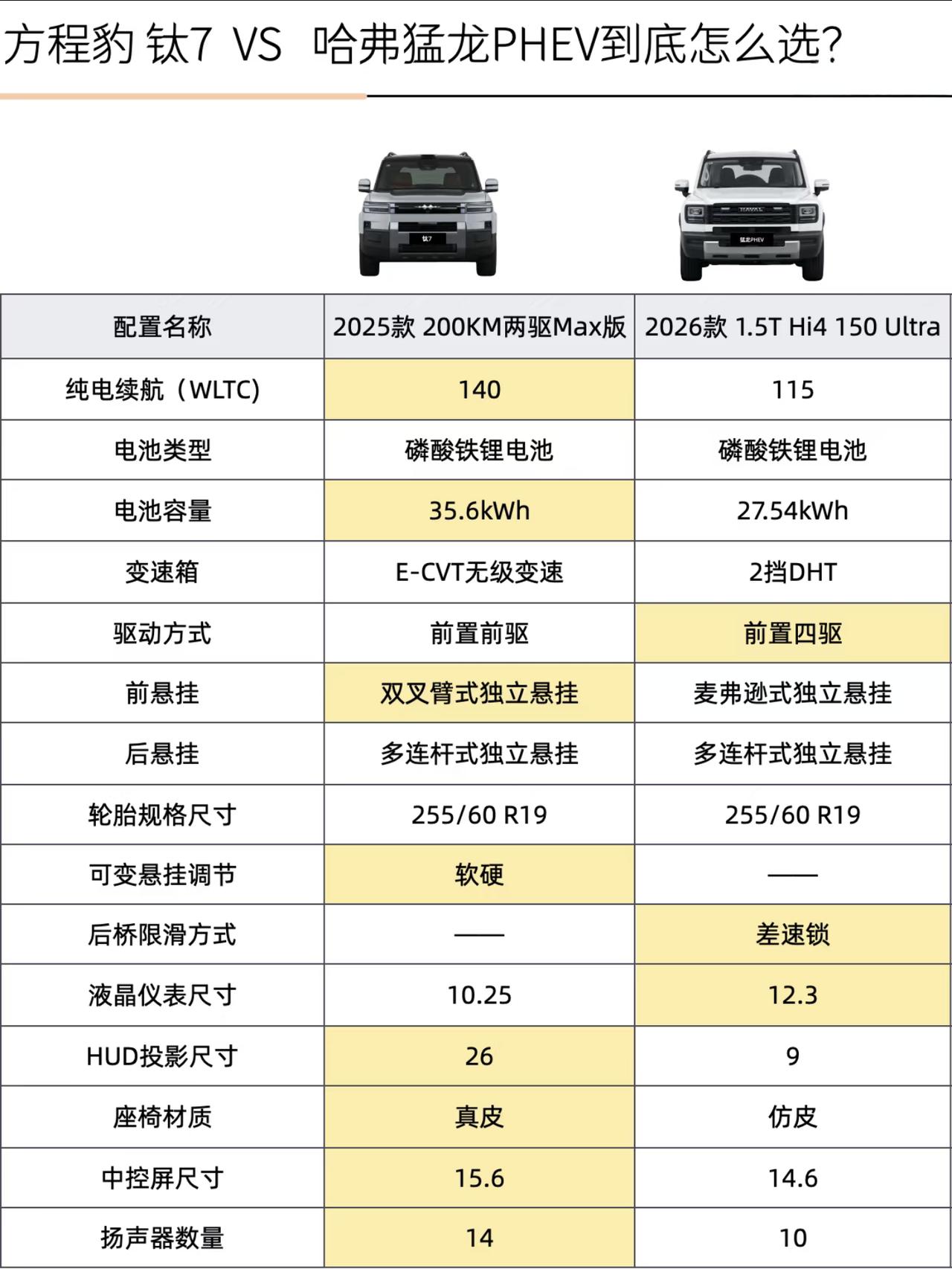 方程豹钛7vs哈弗猛龙PHEV!选车不纠结