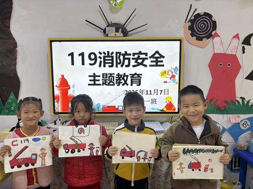 小班孩子在老师引导下认识灭火器,通过图片、视频与实物展示,还进行简单操作体验;中班小朋友化身“小小消防员”,分组在园内寻找消防器材,加深对设施的了解;大班开展消防安全主题绘画,用画笔展现对安全的理解和对消防员的敬意。