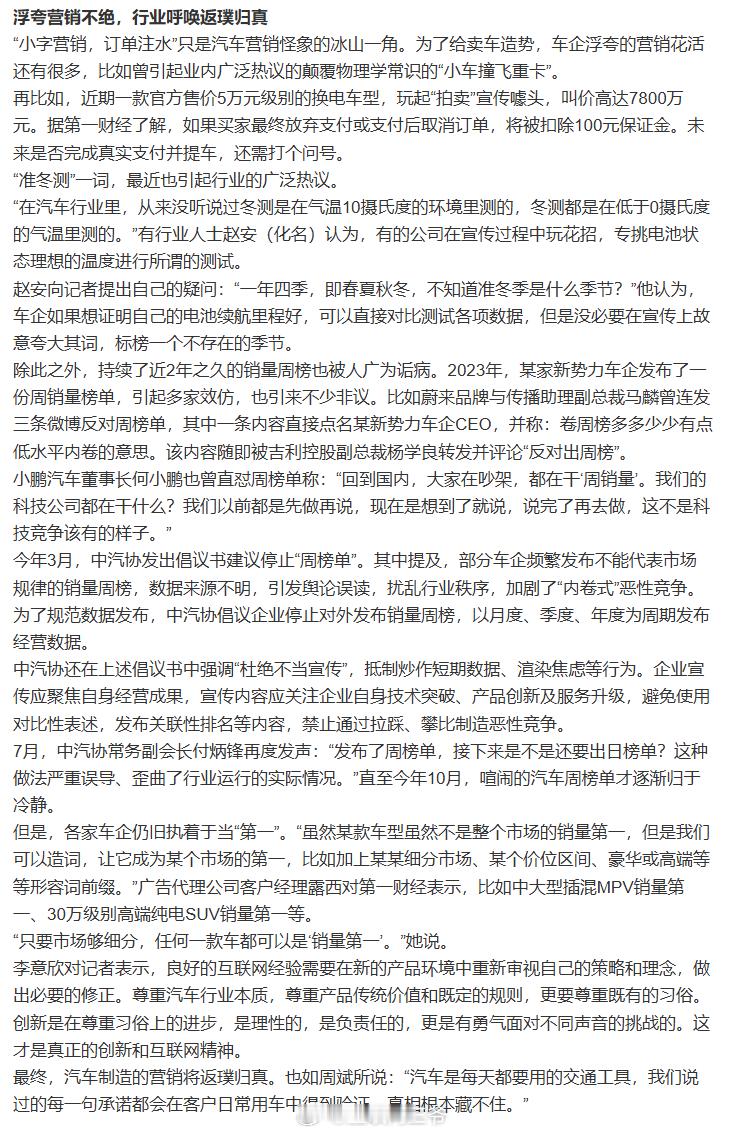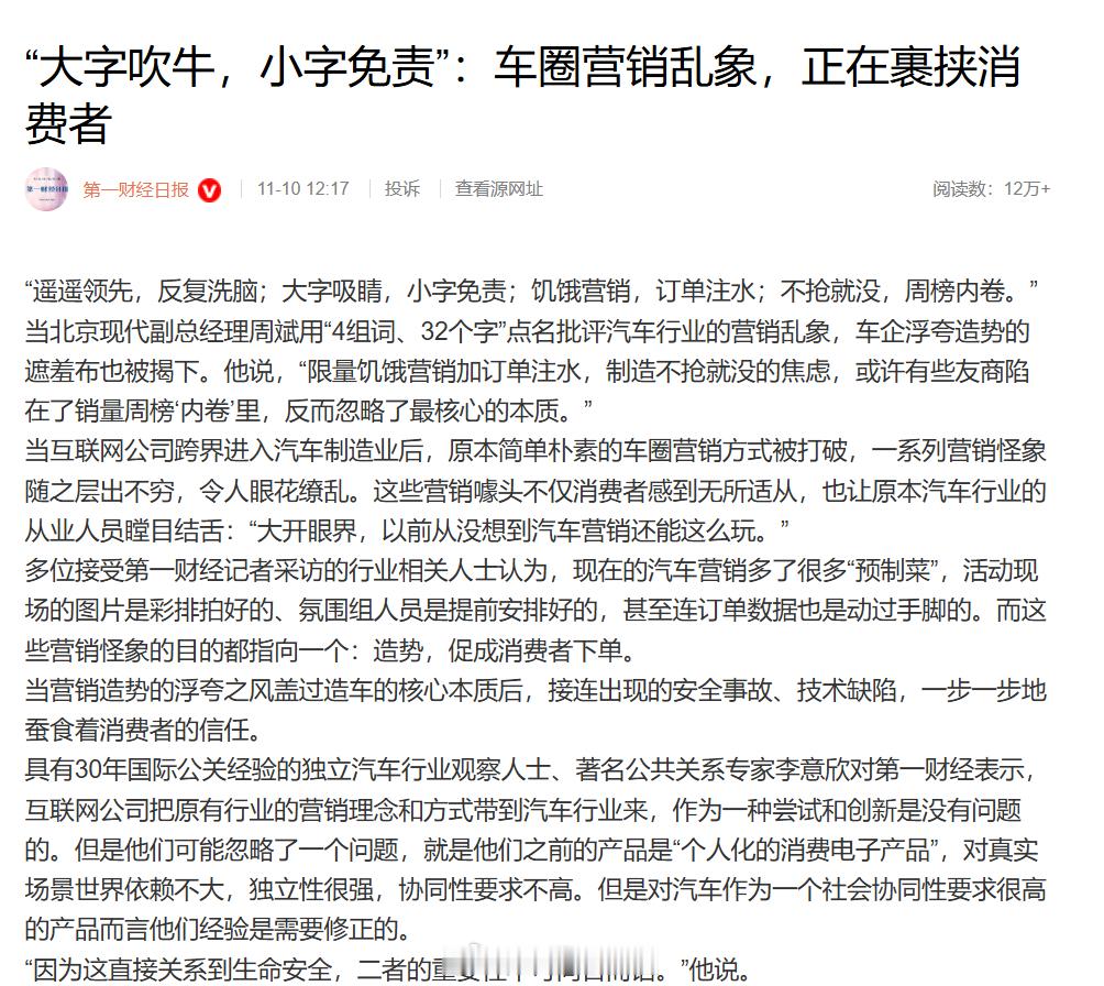 第一财经这一篇《“大字吹牛,小字免责”:车圈营销乱象,正在裹挟消费者》火力好猛啊,请勿对号入座……求豢养粉轻喷。。。