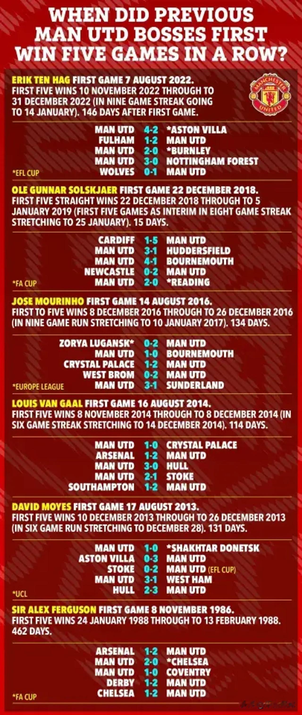 📢曼联球迷为等五连胜不剪发,新帅阿莫林创尴尬纪录! 一位名叫Frank Ilett的曼联铁杆球迷立下誓言:球队一日不拿五连胜,他就一日不剪头发!然而,曼联近期先后战平诺丁汉森林和热刺,让他的长发继续“野蛮生长”…… 😅为何定下“五连胜”目标?原来球队上次五连胜还要追溯到2024年2月滕哈格执教时期。而新帅阿莫林上任后,这一看似简单的目标竟难如登天。 ⏱横向对比英超名帅: •瓜迪奥拉(曼城)上任15天即达五连胜 •阿尔特塔(阿森纳)苦等两年才实现 •克洛普(利物浦)用时近一年 •索尔斯克亚仅用15天成曼联最快纪录 📊后弗格森时代曼联主帅达标时间: 索帅(15天)→范加尔→莫耶斯→穆里尼奥→滕哈格(均半年内) 唯 一 例 外:阿 莫 林 成 为 唯 一 半 年 内 未 达 标 的 正 式 主 帅 !