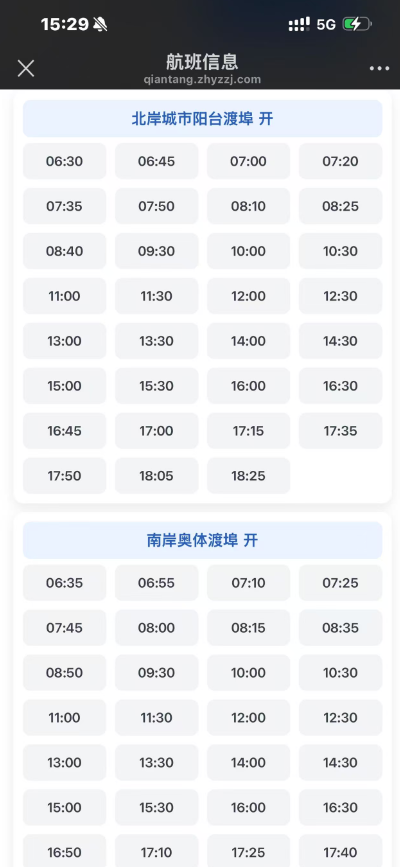 温馨提示广大市民朋友:因航行受到潮汛、团雾、洪水等气象水文条件影响较大,实际班次将作动态调整。
