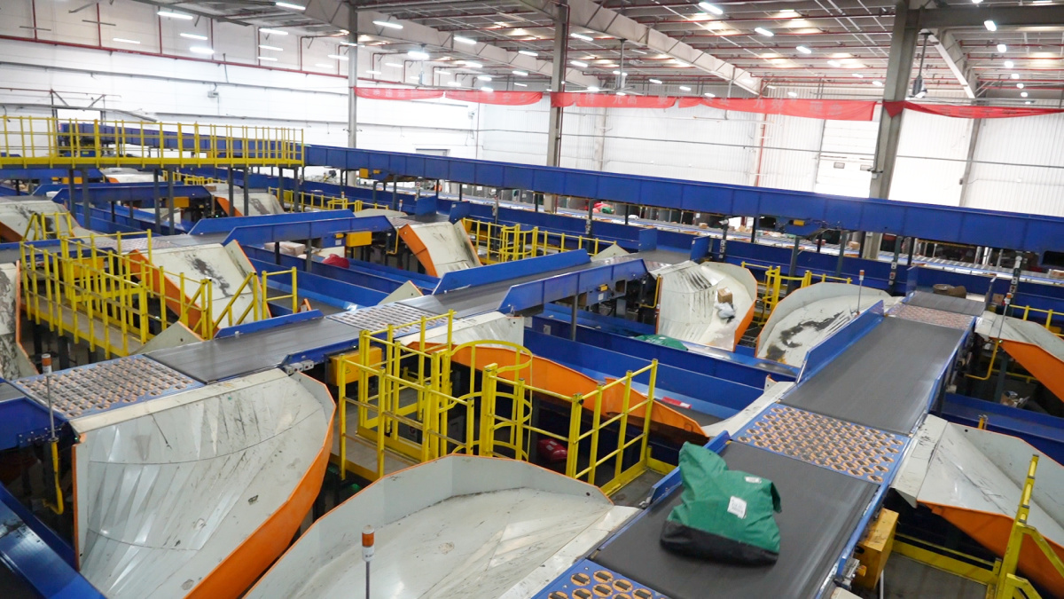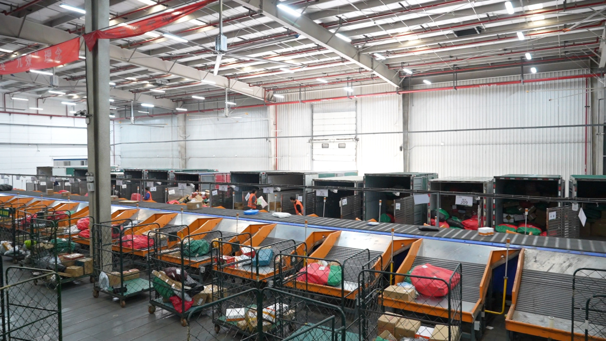 在商丘新发现代物流园商丘邮政邮件处理中心作业现场,记者看到,小件分拣机、摆轮、直线分拣机等设备组成一条条智能流水线。工作人员有条不紊地将大量出口快递进行分拣装车,随后,这些邮件将随邮车启程,由揽投员送往全国各地。