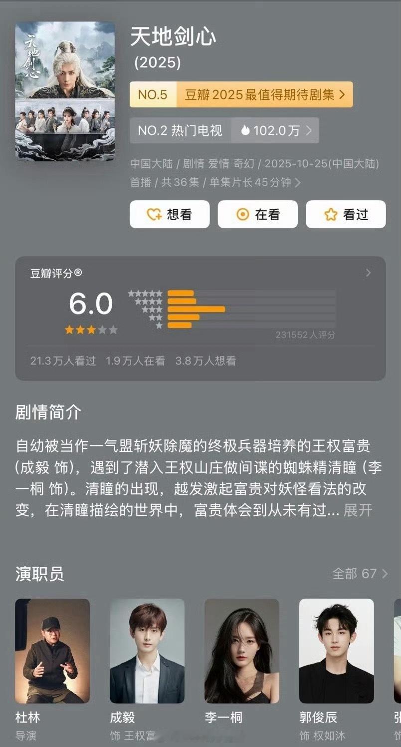 《天地剑心》开分6.0,打分人数23w+,客观评价一下这个打分