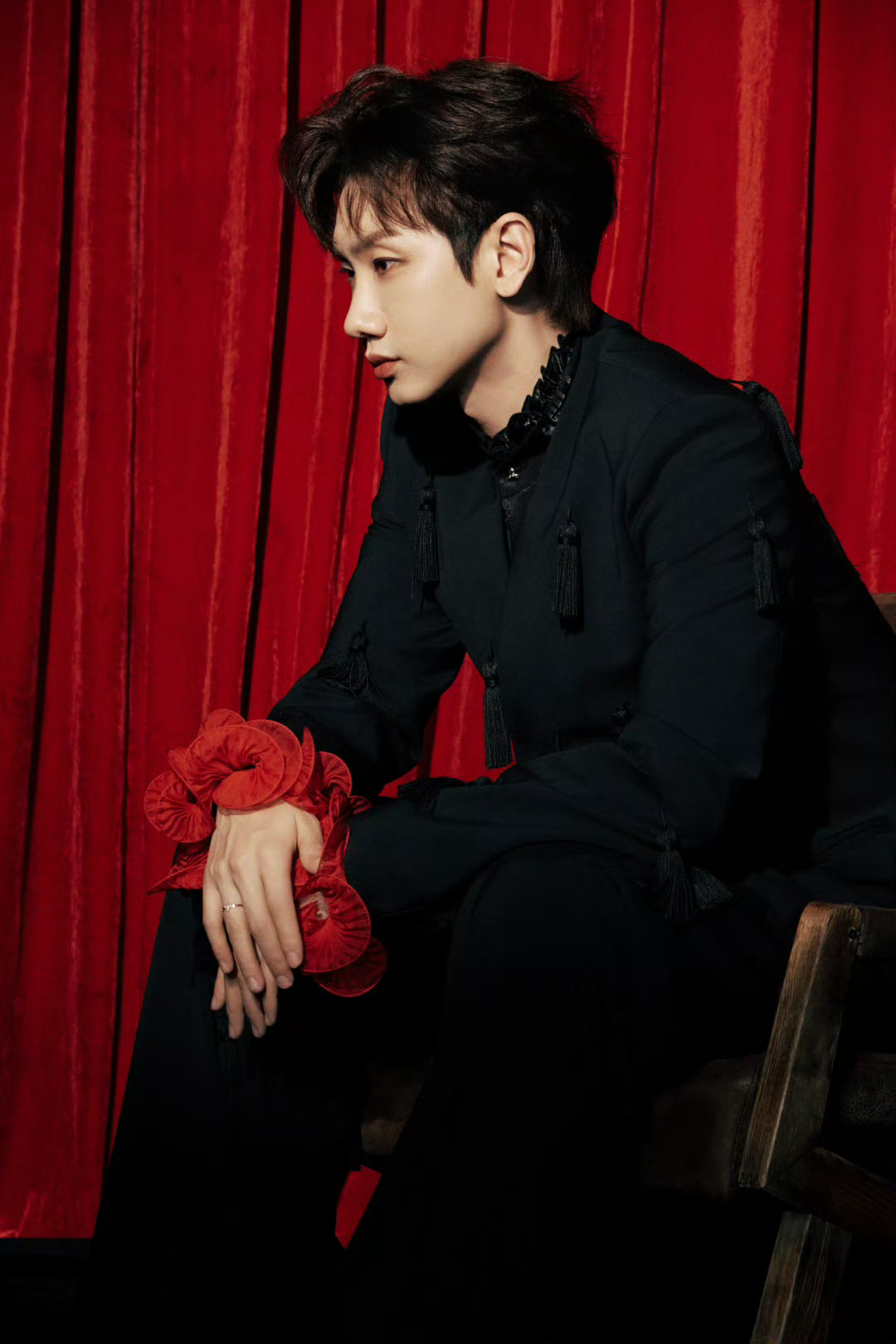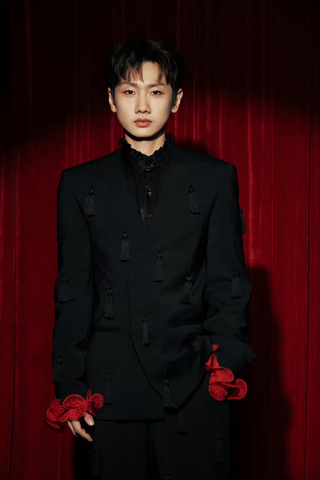汪苏泷夜莺与玫瑰 汪苏泷这套造型太会了!2025秀款流苏黑西装搭复古鲜红荷叶边丝绒衬衫,暗潮涌动满是浪漫感~ 适配王尔德诗句的热恋氛围,是大娱乐家华丽极繁主义的完美callback,狠狠期待绝美舞台!