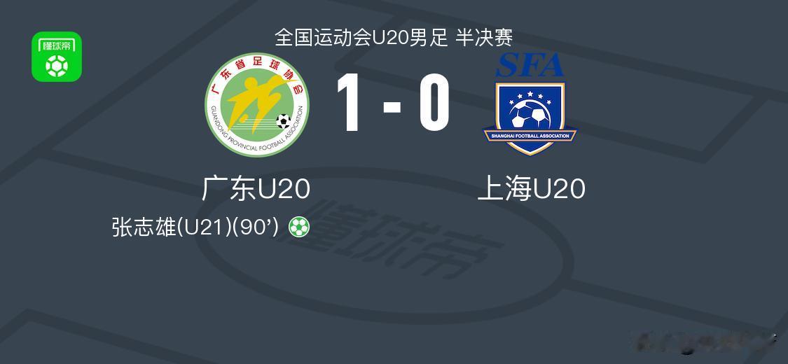 在刚刚结束的全运会U20男足的半决赛中,广东队凭借张志雄在第九十分钟的点球破门!以1:0的比分挤进决赛!将与湖北队争夺全运会男足U20组冠军! 本场半决赛双方打的都不是还激烈!进攻端,上海队的蒯纪闻和李新翔表现尚可!刘诚宇有点沉寂!并在下半场被替换下场! 而广州男足今晚防守端表现稳健!门将发挥不错!双方在即将进入伤停补时阶段!上海队后卫禁区犯规!被主裁判买买提江判罚点球!替补上场的张志雄点球破门!广东也凭借此球战胜了上海!杀入决赛!与湖北队争夺冠军!