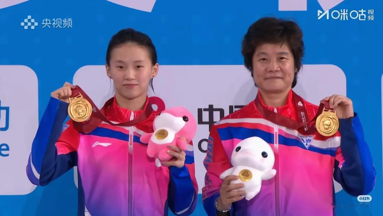 今天晚上最开心幸福的陈芋汐和教练余晓玲指导,师徒俩有今天的成就,付出多少艰辛只有她们自己知道,金牌都是泪水汗水铸就。师徒俩尽情的享受属于你们的荣光,享受大家的喜欢和爱,双向奔赴。 祝福陈芋汐继续努力加油,越来越好。