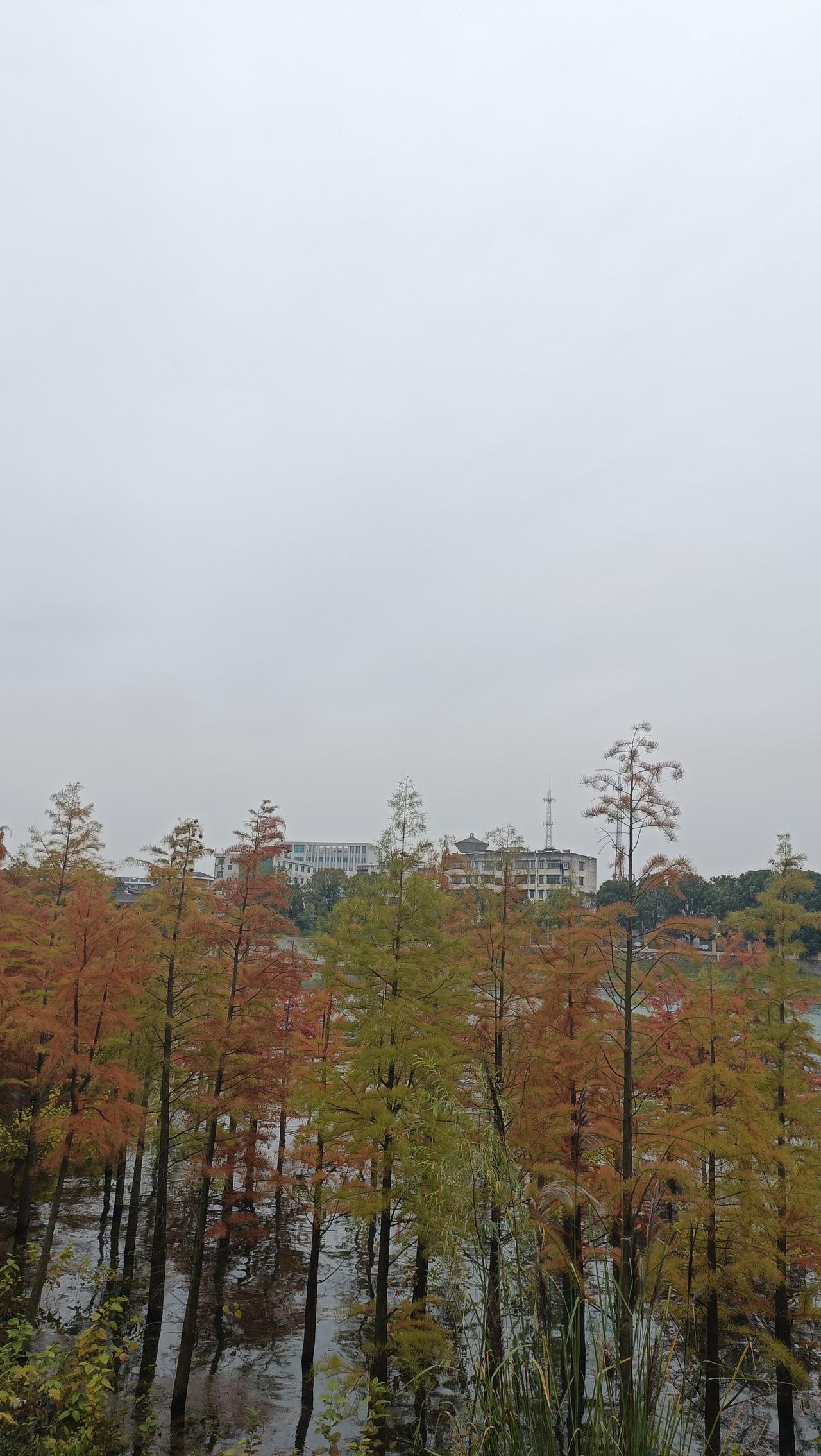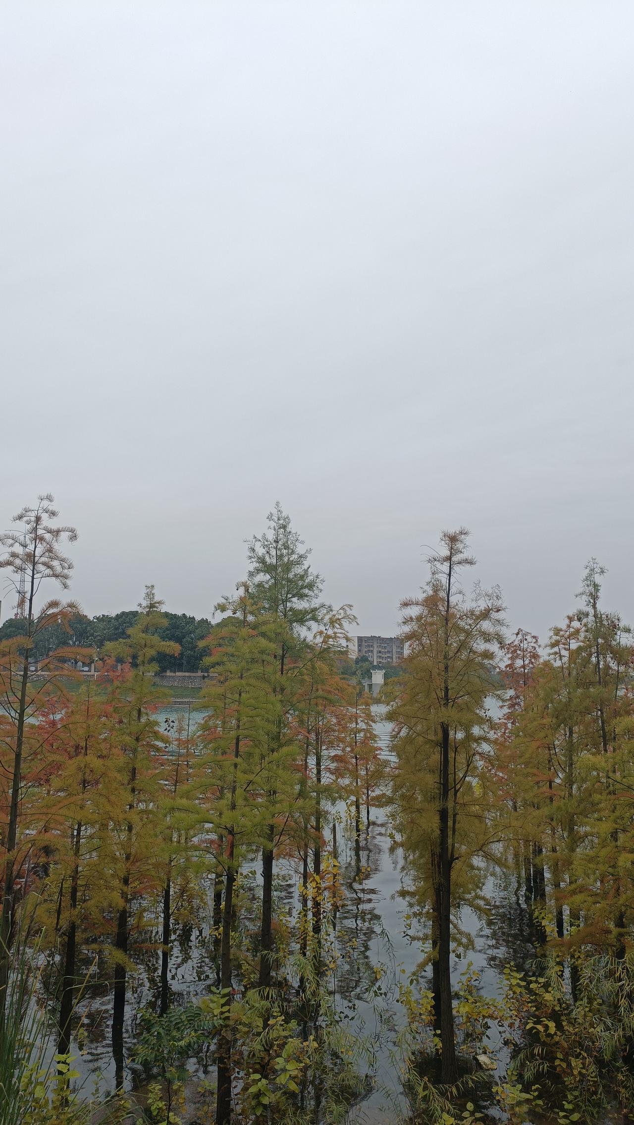 初冬的漳河,水是清澈的, 没有落霞与孤鹜齐飞,秋水共长天一色 有的只是阵阵北风的吹拂 现在的风吹的还不冷 却吹红了岸边的水杉 这是冬天应该有的颜色 也是大自然的印记 这一片红杉林在水中整齐的排排矗立 美的看不够,虽然只是走马观花 也是这个下午的小确幸