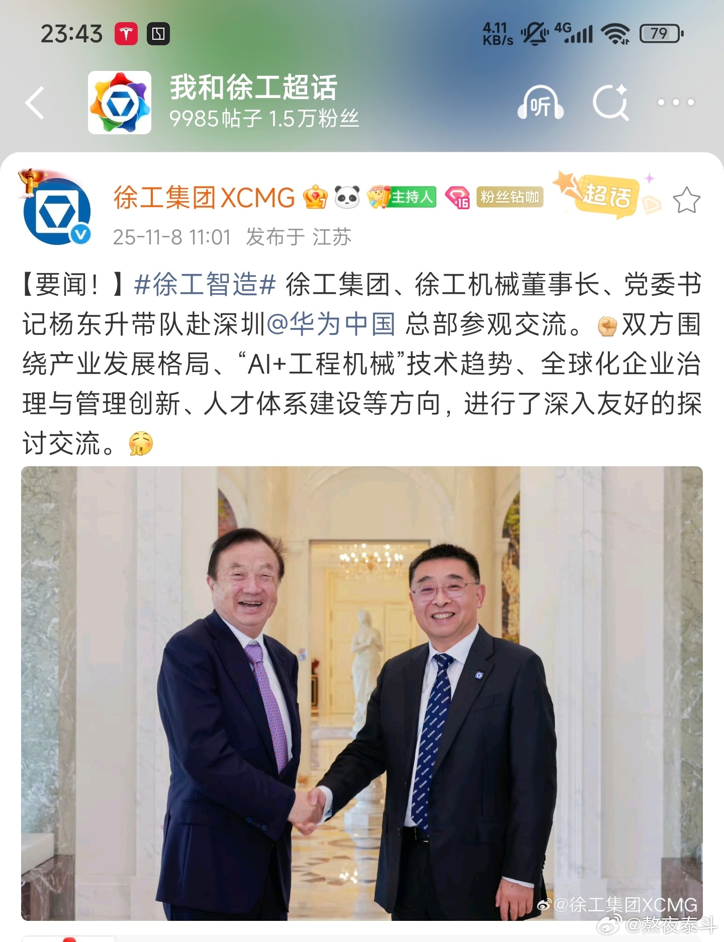 徐工集团赴华为中国总部参观交流,以后吊车挖掘机也要用上ADS了吗?[doge]华为[超话]