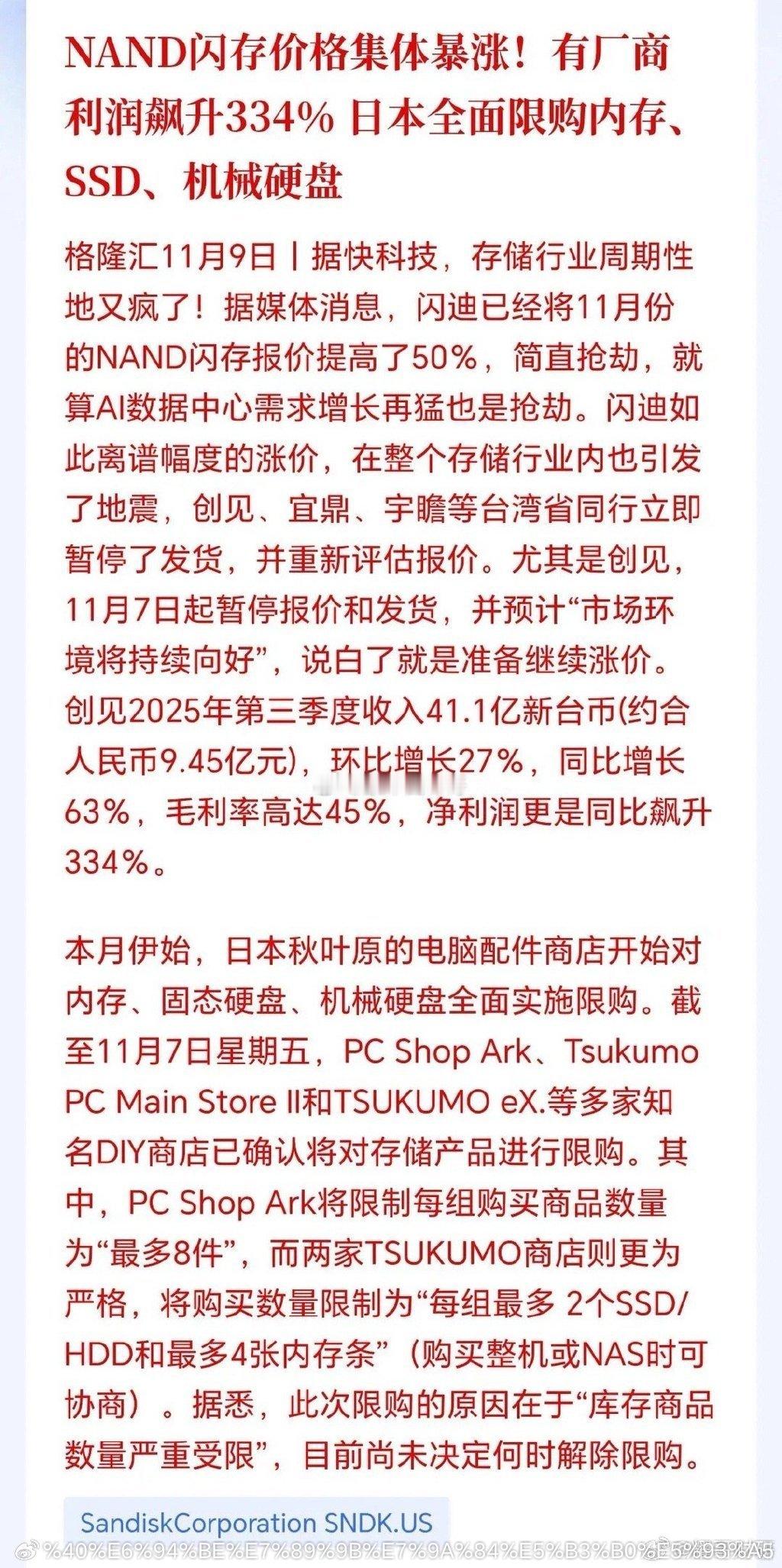 先是算力芯片,又是光模块,现在是存储芯片,看似很平静,老外们也在大力发展人工智能,也在疯狂的堆算力了。