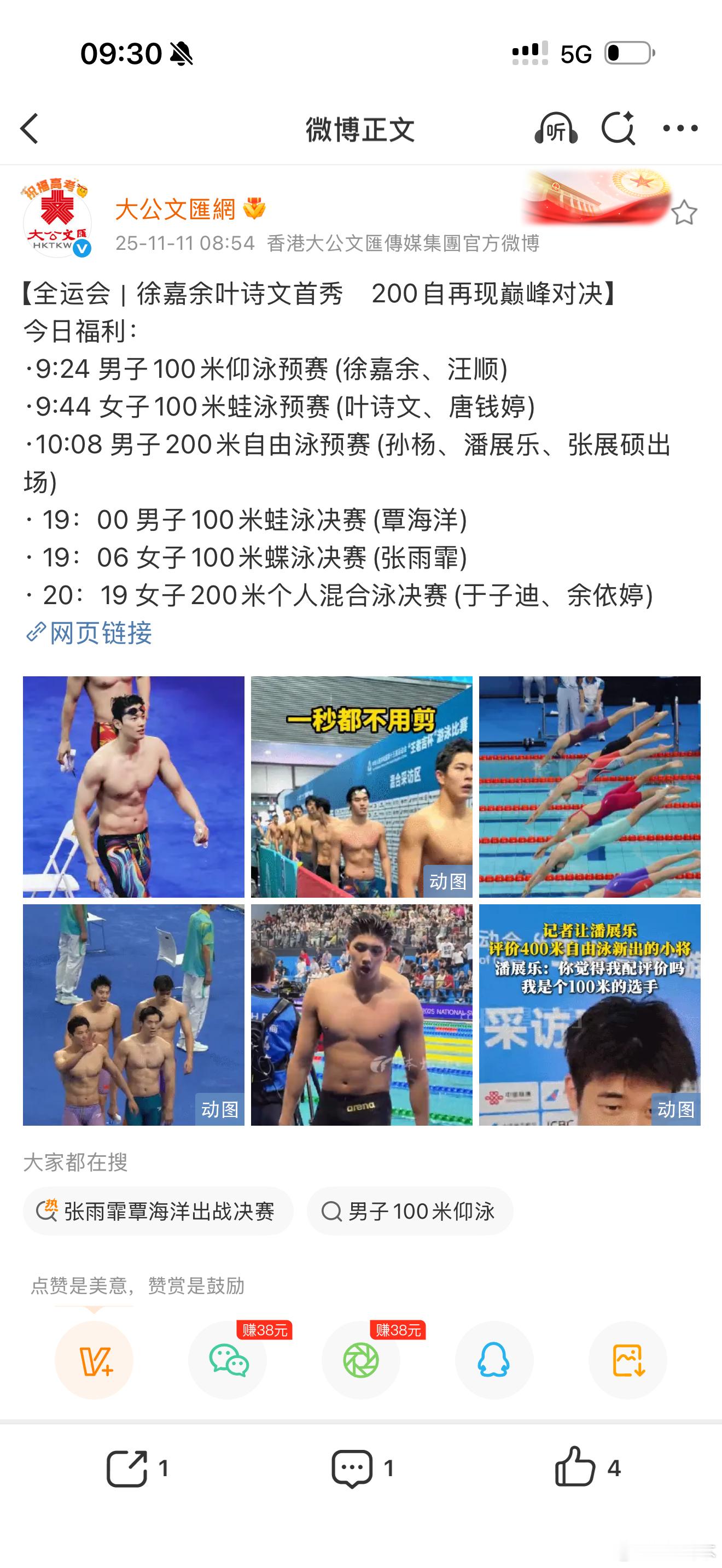 游泳是看不了的。全运会的游泳真看不了,不会按天时的,我前面也说过很多全运会很猛的人国际赛场一般般,不过张展硕,李冰洁,于子迪,这几个新人国际赛场还是挺猛。