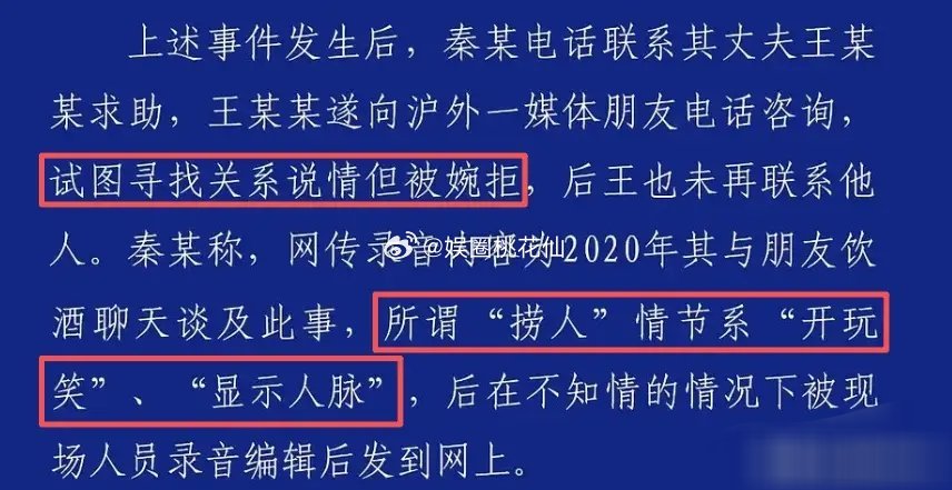 编剧秦雯袭警后找人捞出的通报来了!通报指出秦雯等人有违法行为但没有袭警,录音里说的找人捞人也只是醉酒“开玩笑”,那这么说,古二放出的音频都是真的?