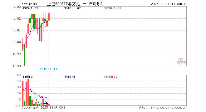 上证580ETF易方达(530100)业绩比较基准为上证580指数收益率,管理人为易方达基金管理有限公司,基金经理为李博扬,成立(2025-10-10)以来回报为2.27%,近一个月回报为2.27%。