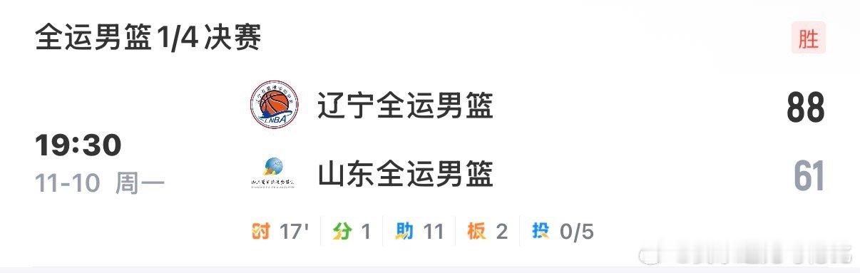 辽宁男篮顺利晋级全运会四强,明天晚上半决赛,全运版的辽粤大战即将打响,但是,赵继伟要调整状态啊,今天5中0,1分,还有6个失误[允悲]辽宁男篮全运会