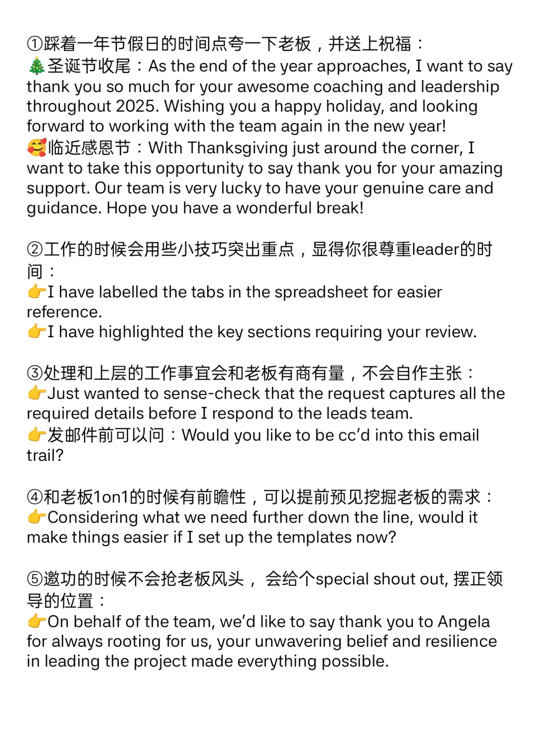 🎄圣诞节收尾:As the end of the year approaches, I want to say thank you so much for your awesome coaching and leadership throughout 2025. Wishing you a happy holiday, and looking forward to working with the team again in the new year!