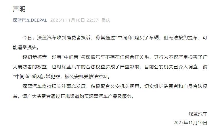 关于阿维塔/深蓝车主被“中间商”坑了的事,车企双双纷纷发声明了 划重点: 1. 涉事“中间商”与官方无任何合作! 2. 公安机关已介入,中间商或涉嫌犯罪被控制! 3. 长安汽车同步放狠招:举报不实信息最高奖100万![哆啦A梦吃惊] 车企虽然撇清关系,但消费者的损失谁来买单?还是那句老话:买车走正规渠道,贪小便宜(可能存在的差价诱惑)吃大亏! 各位老司机,你们会考虑“中间商”购车吗?遇到这种事该如何维权?评论区聊聊!