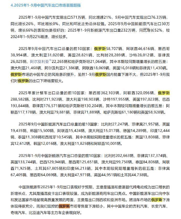 中国汽车出口格局大洗牌:俄罗斯从“头号买家”跌成老三,墨西哥阿联酋接棒登顶[哆啦A梦吃惊] 乘联会最新数据: 2025年前9个月中国汽车出口—— 俄罗斯:35.77万辆(同比暴跌58%) 墨西哥:41.07万辆(新晋全球第一) 阿联酋:36.78万辆(稳坐第二)