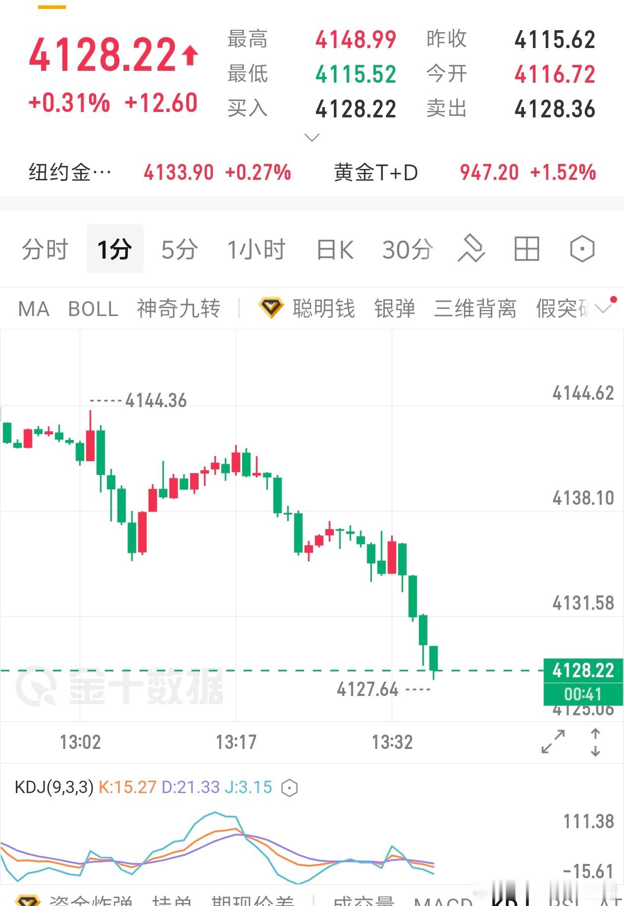 黄金多次回踩4127/26未能延续,所以这波回踩不抓了,稳健离场!!