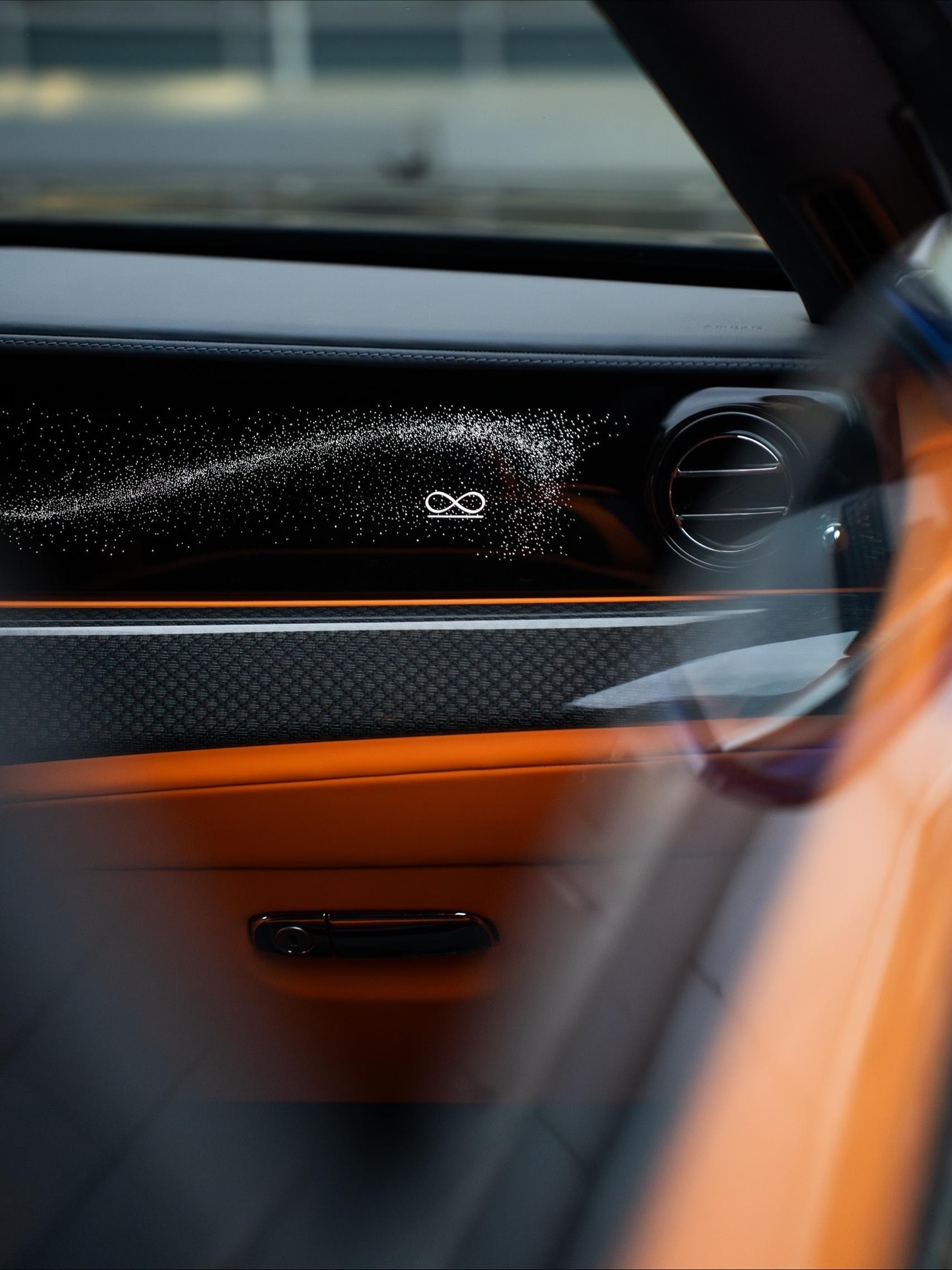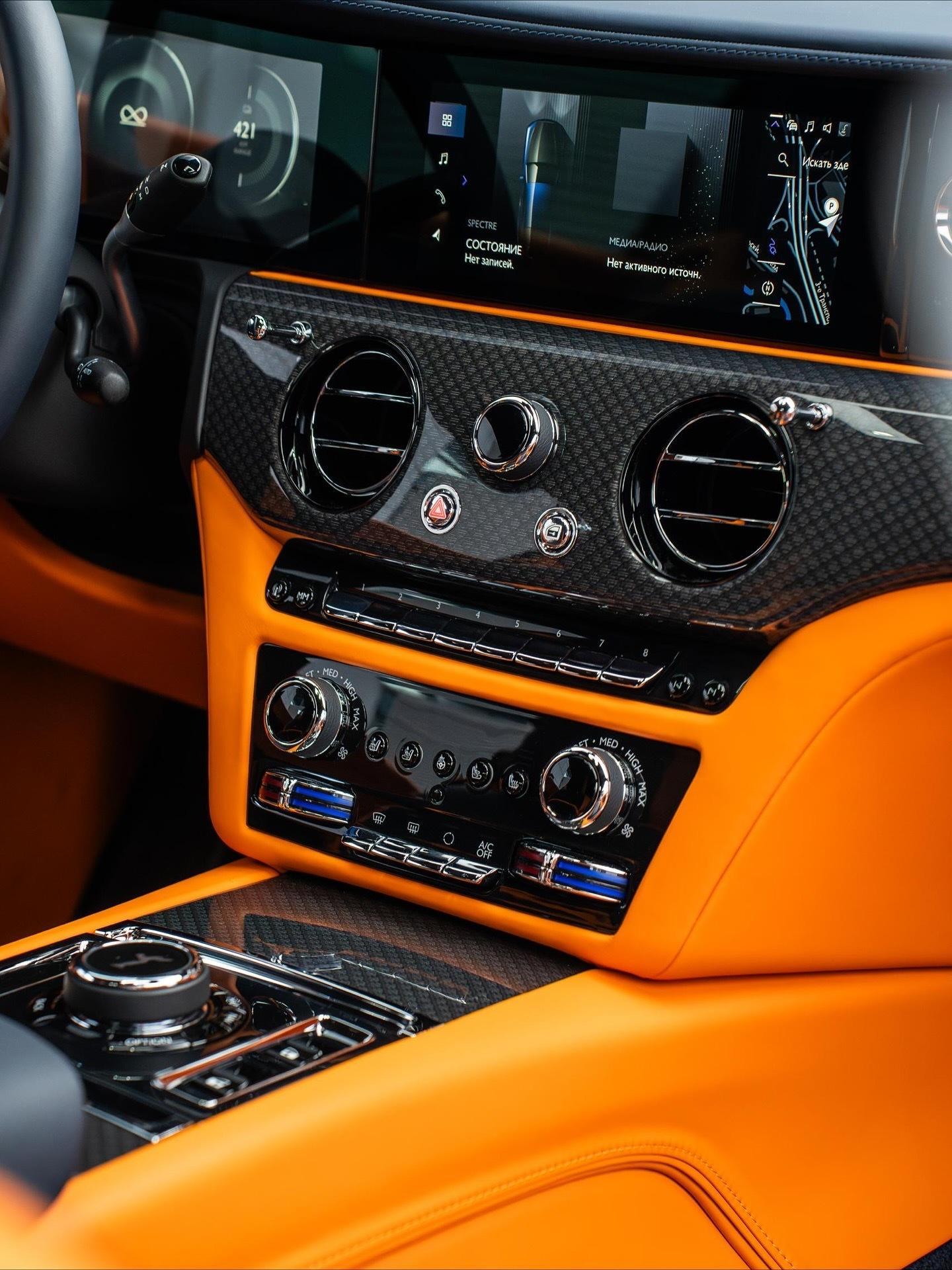 劳斯莱斯Spectre Black Badge ——现代奢华与自信力量的化身。深蓝色车身凸显线条的优雅,而柑橘色与黑色的内饰色调则增添了几分大胆的点缀。659马力的动力和Infinity模式确保了瞬间加速,同时兼具流畅和完美平衡。