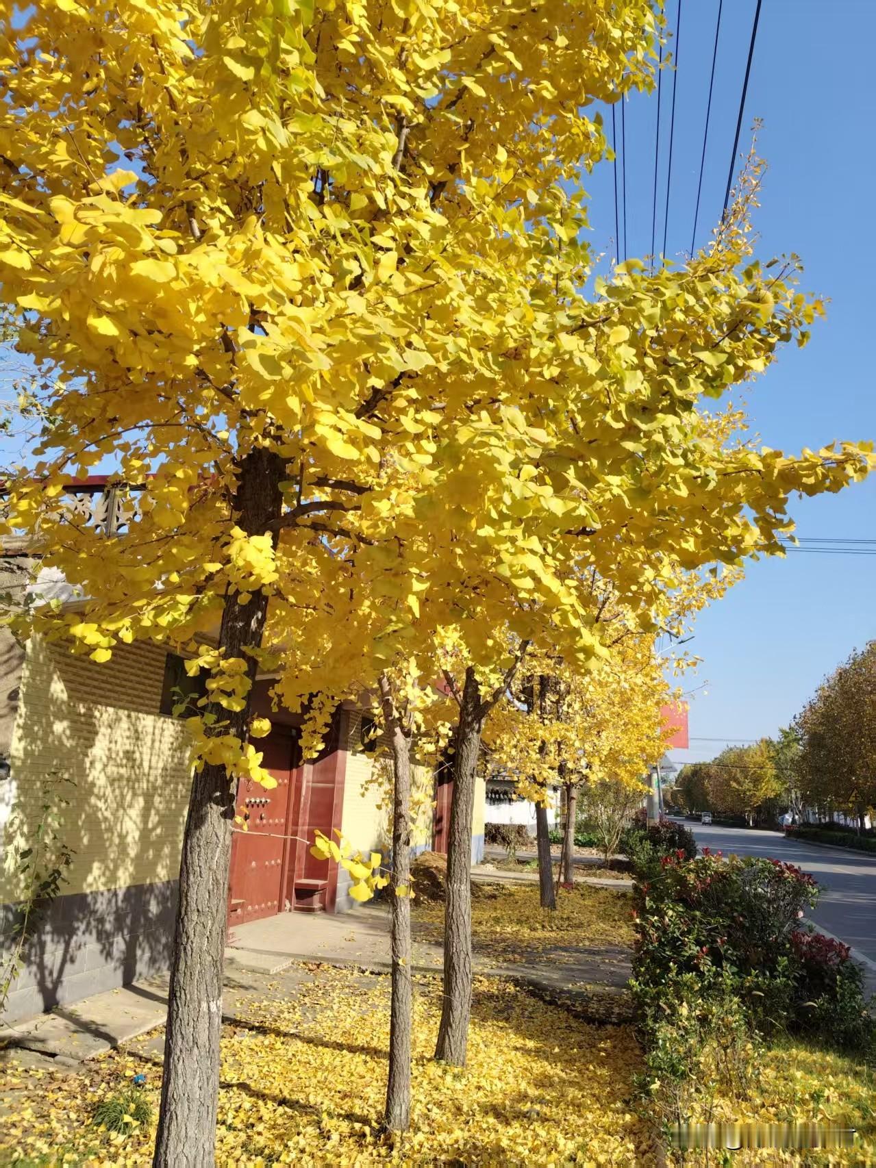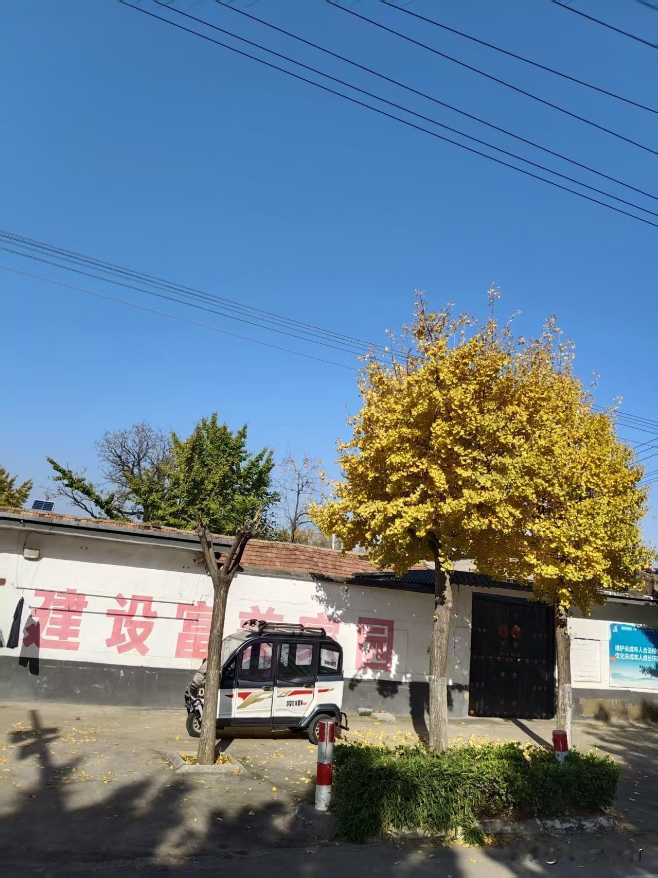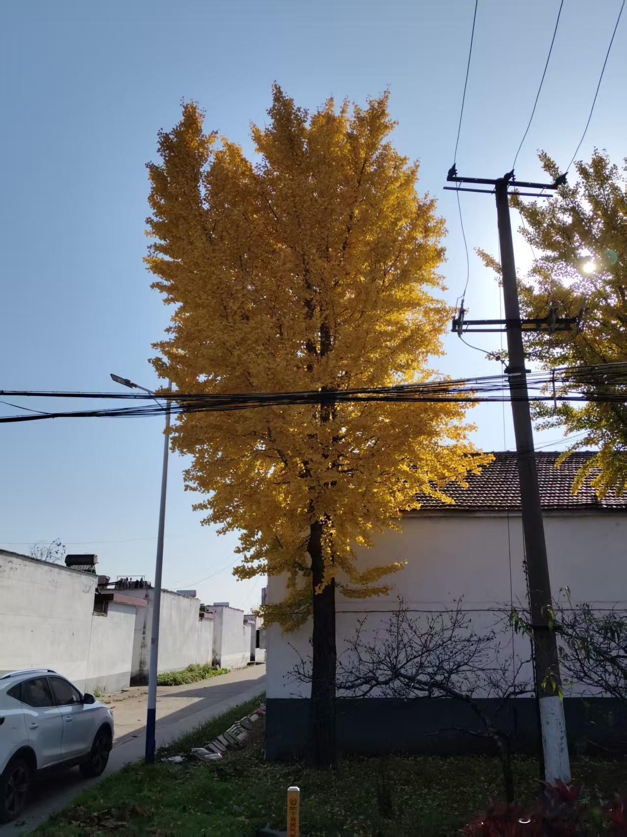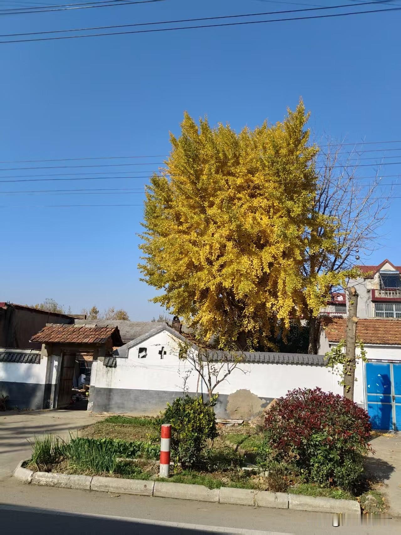 一树银杏叶金黄,忽起秋风舞华裳。满树金黄的银杏叶把深秋的村子点缀成了一幅美丽的图画,让原本沉寂的小村有了些生机。银杏叶美景分享 来自大自然美丽农村风景