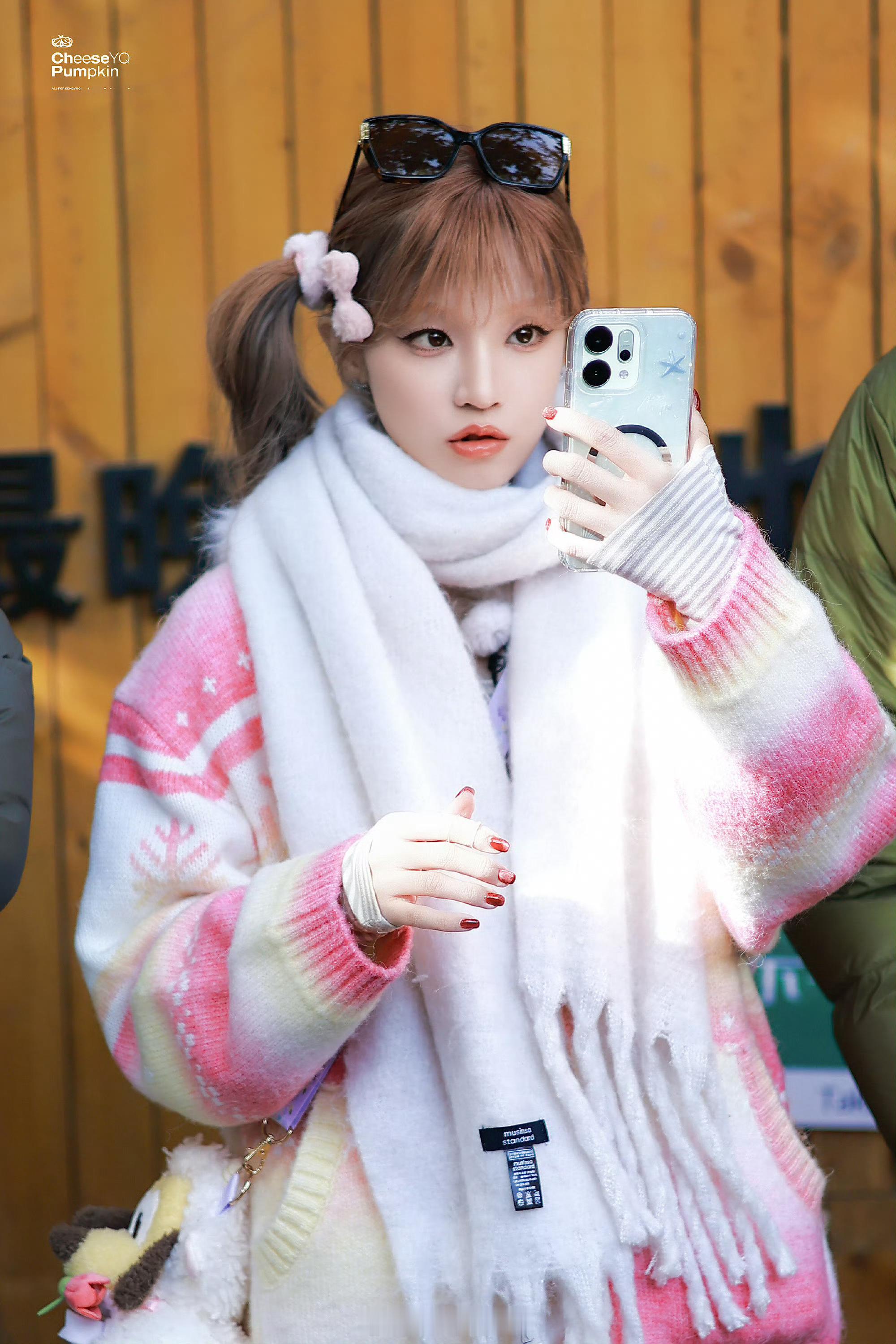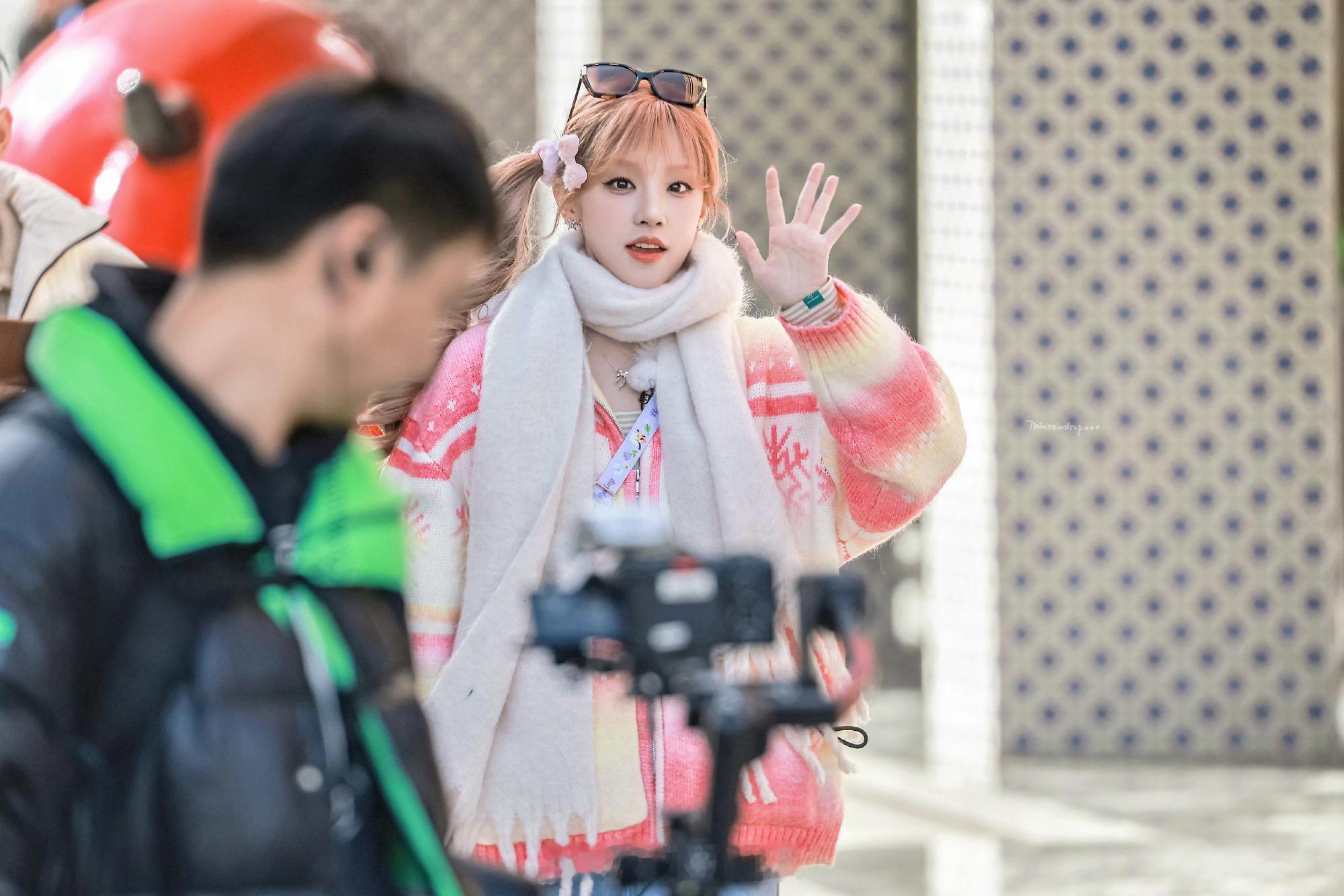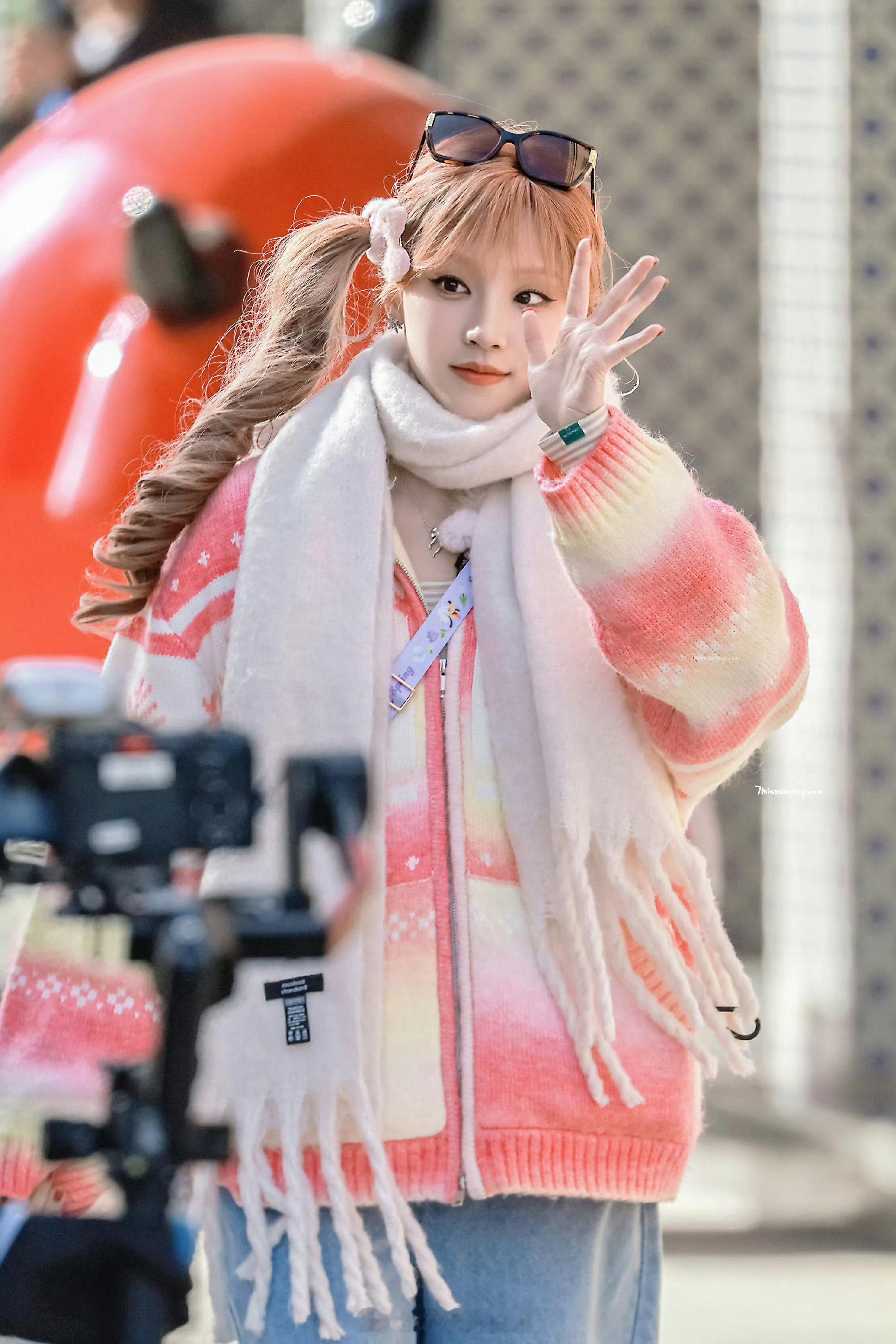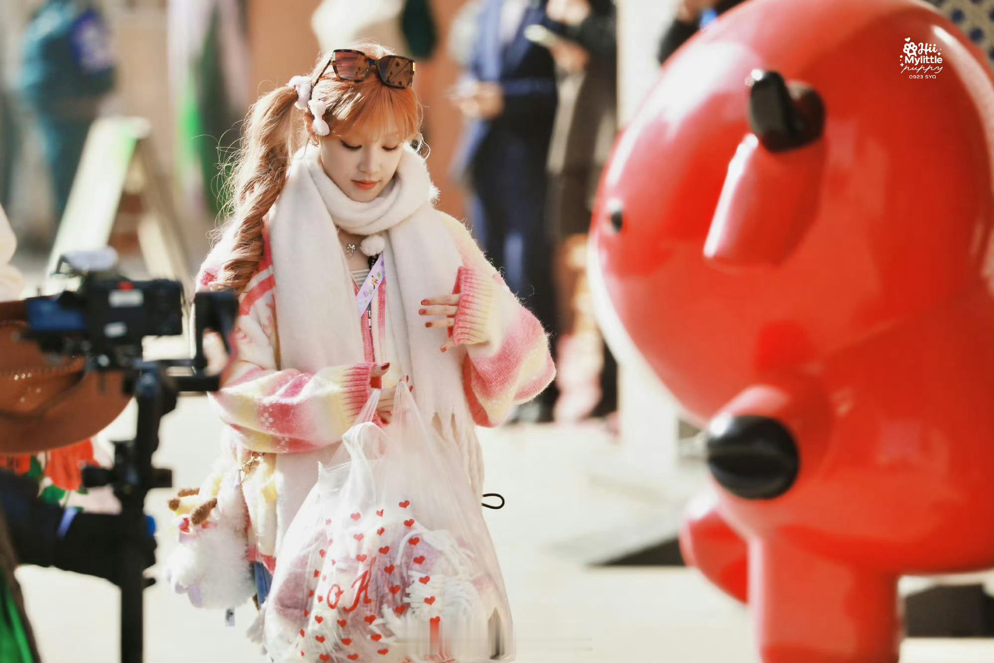 被这个侧马尾+粉发色粉毛衣雨琦萌晕了看路透完全元气满满!!状态太好啦~