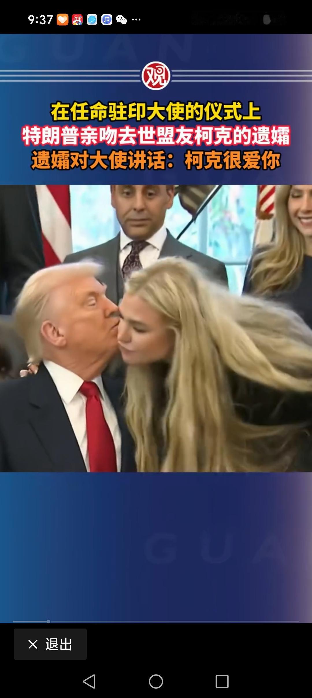 特朗普亲吻了去世盟友柯克的遗孀,一个吻说明了一切,特朗普还说,不要害羞,过来。 这是在任命驻印大使的仪式上,特朗普和柯克妻子之间发生的事情。 这特朗普又是亲吻又是拉手的,让人看着头都大。 真是对柯克妻子百般宠爱,万般呵护。 隔着屏幕都听出他们亲出的声音来。 网友说,柯克不得气的把棺材板都砸了,他要气的跑出来。 不过,这柯克不可能生气,他愿意特朗普照顾自己的妻子和孩子。 不过,对于美国的这些礼节,动不动就亲上了,让人接受不了。 特朗普亲吻柯克的遗孀,你怎么看?