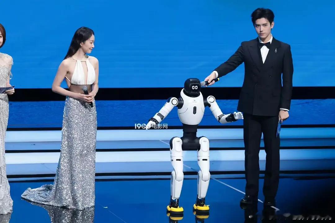 陈飞宇给机器人递话筒,机器人说两句吧,不说就不合适了