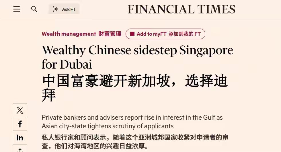英《金融时报》发表了《富裕的中国人绕开新加坡,转向迪拜》。 随着新加坡对申请者的审查以及税收制度不一样,越来越多中国富豪转向了更宽松、稳定,对数字货币更包容的迪拜。 其实就是这些有钱人,为了自己财富的安全,为了能让账面上原本灰色的数字变得更白,他们离开了审查开始严格的新加坡。 而另一面,新加坡自从李光耀、李显龙之后,已经被人诟病成最干净的印度城市了。这一切都和新加坡的地理、政策、以及对华态度有关。 其印度裔总统尚达曼甚至不想中国发展自主科技产业,希望和美国互相依存,意思就是美国高端的,你中国走低端路线就好。 其国家发展部长徐芳达更是说不要“你做初一,我做十五”,中国需要“忍让”“退一步”。意思就是要中国和日韩一样,直接跪下来就好了,别打了。 要知道新加坡大部分是华人,经济上更是依赖中国经济发展。 但最近几年来,其对华态度大不一样,正因如此,也就怪不得那些“聪明”的有钱人开始放弃新加坡,也选择迪拜了。 说句不好听的,如果离开中国这个大背景、大环境,单靠美支持,新加坡也真的会如网友调侃的一样,变成坡县!
