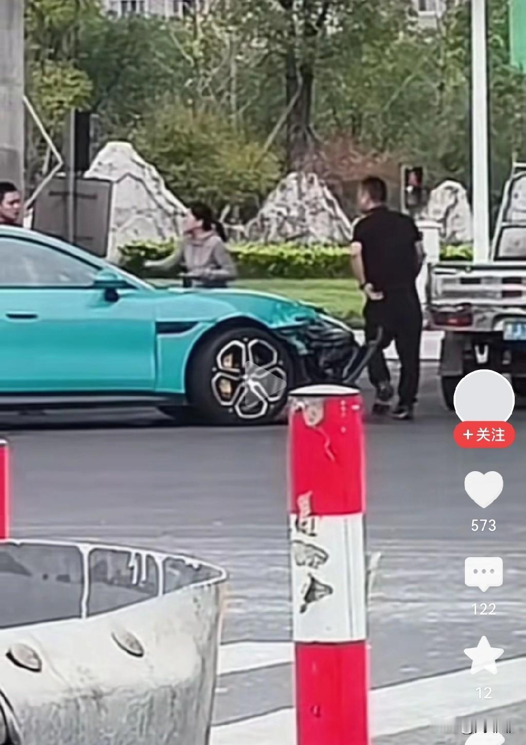 小米SU7刚提出来 还没上牌 就变成战损版了! 可惜了~ 这个车主是心疼得不得了,下车框框就给那个小货车两脚![捂脸][捂脸]