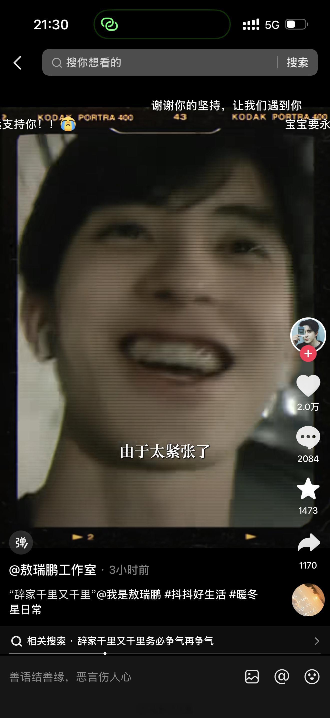 苦尽甘来,敖瑞鹏迎来了自己的苦尽甘来。工作室官抖最新一条真的好让人感动。