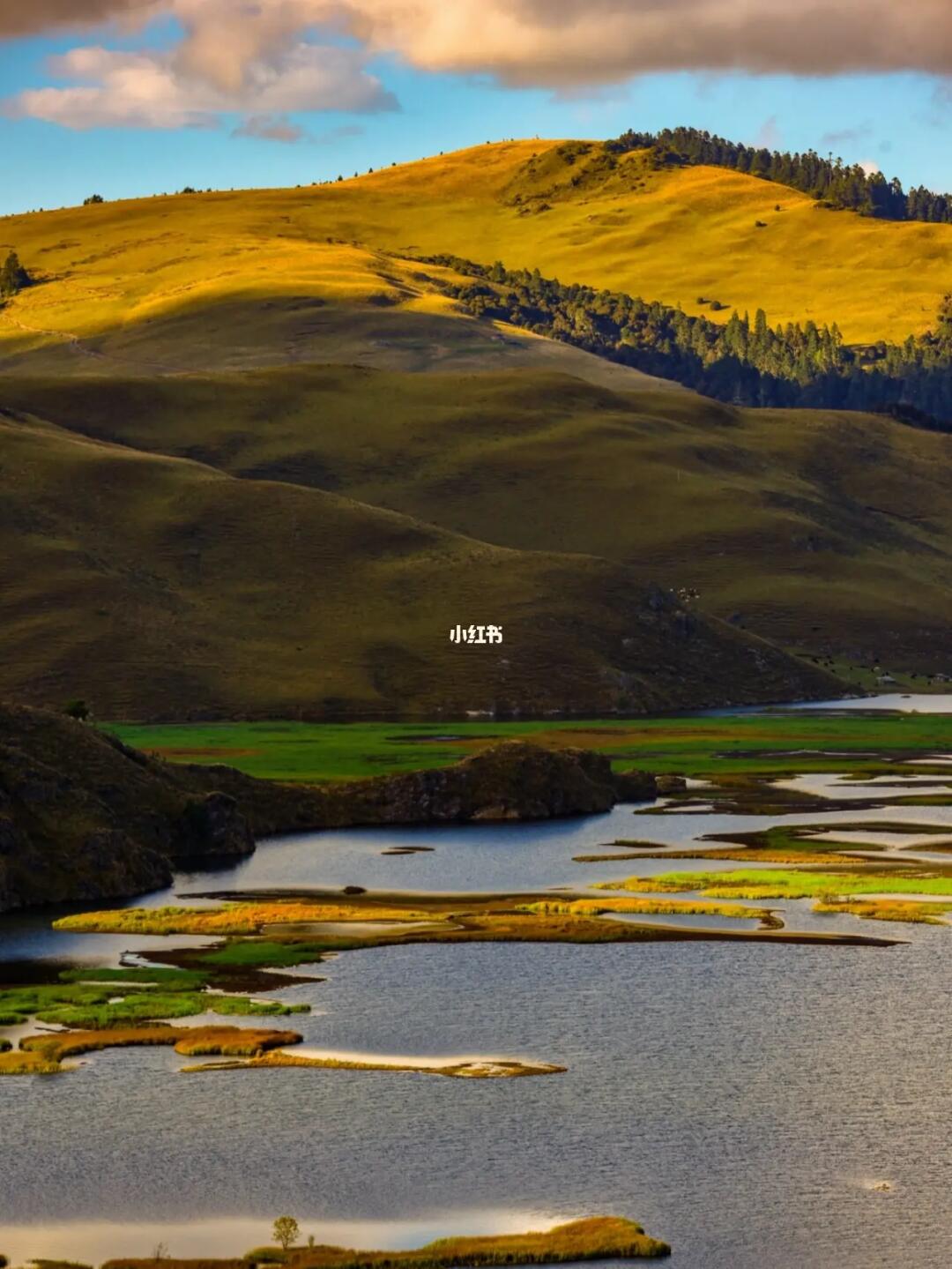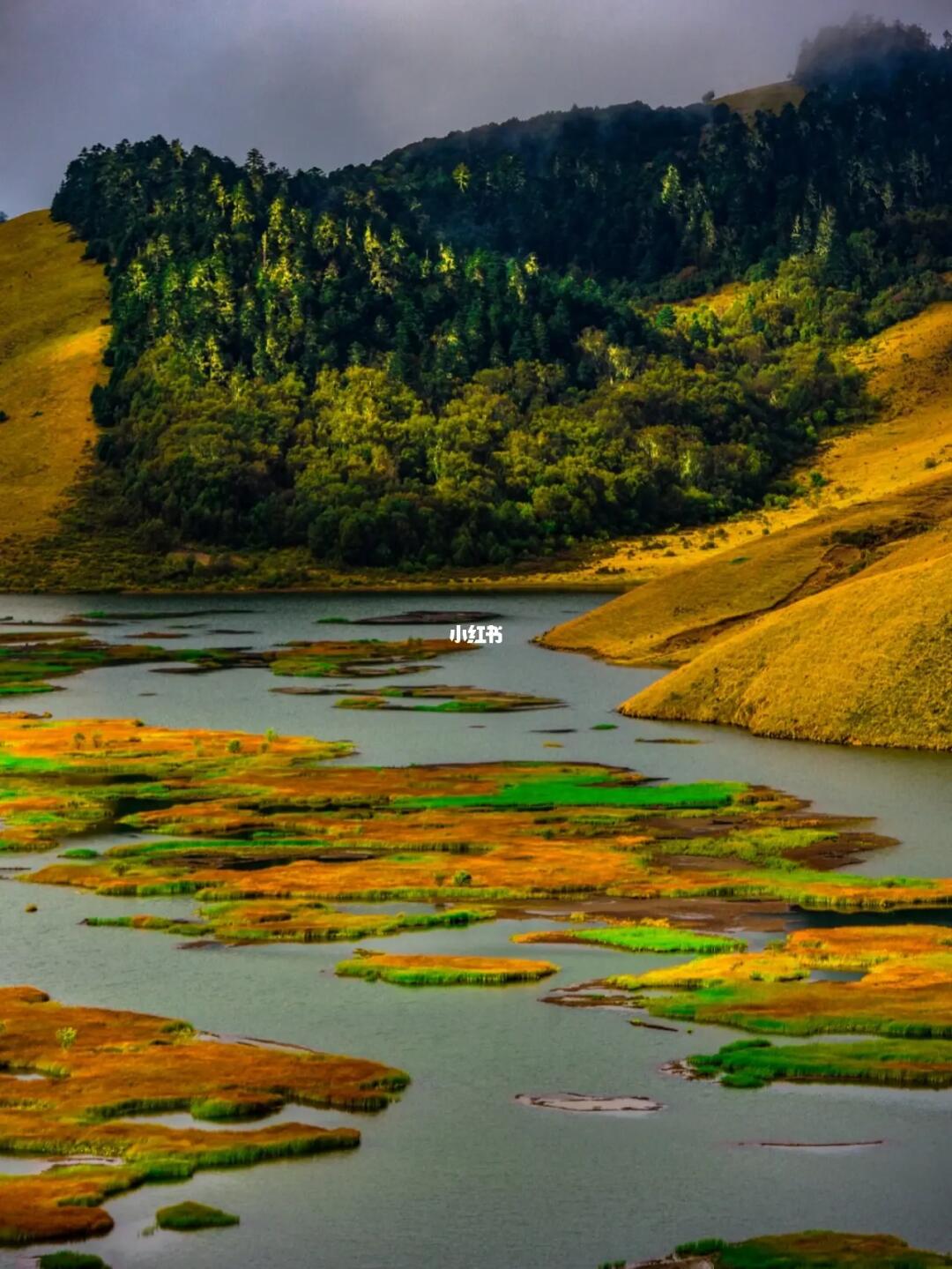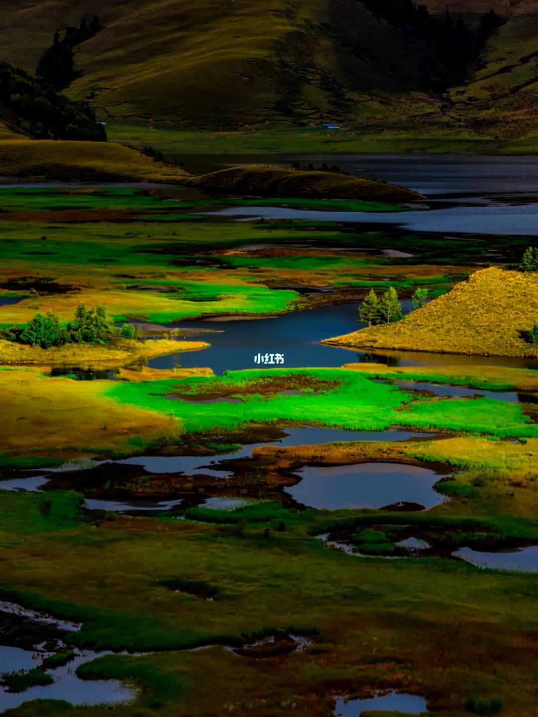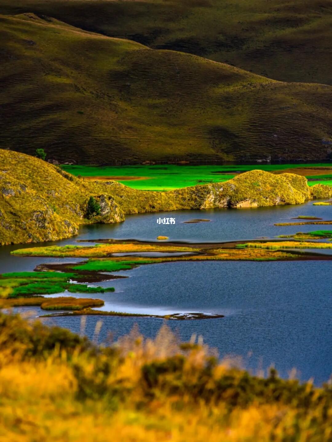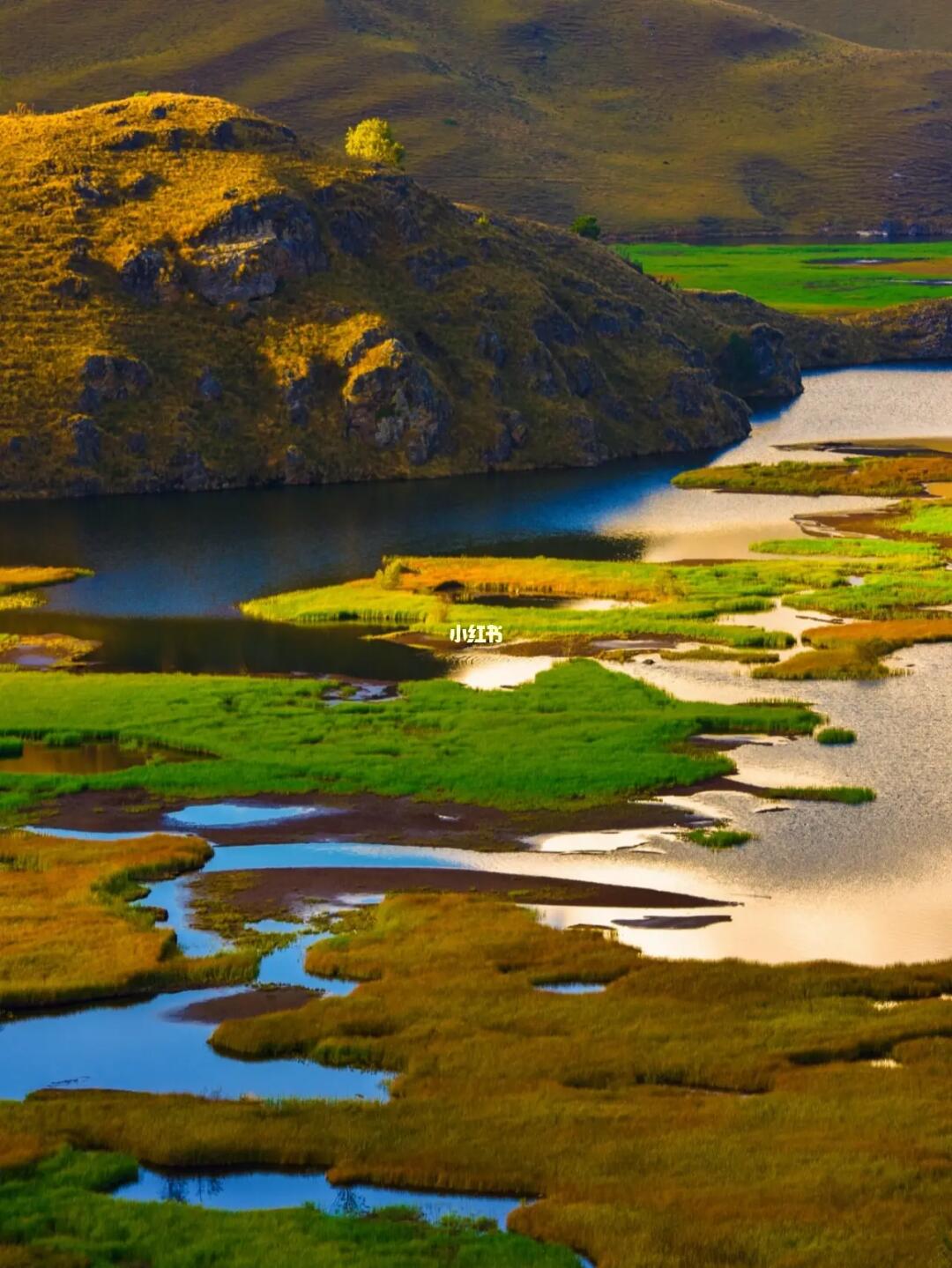 🎈寸冬海子最独特的景色是湖中漂浮着数百座漂浮的草甸,这些浮岛并不固定,随着季节、风、气候而不断变化,可谓每日一景。秋天里的浮岛金黄色连成一片,格外耀眼